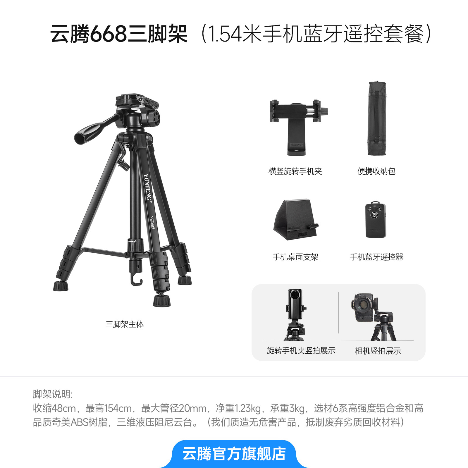 • 【 2.208m 】+JJC 화이트 TP-S1 소니 블루투스 리모컨 핸들 브래킷+가방+수평 및 수직 휴대폰 클립+휴대폰 데스크탑 브래킷