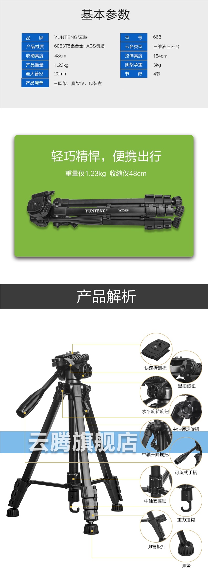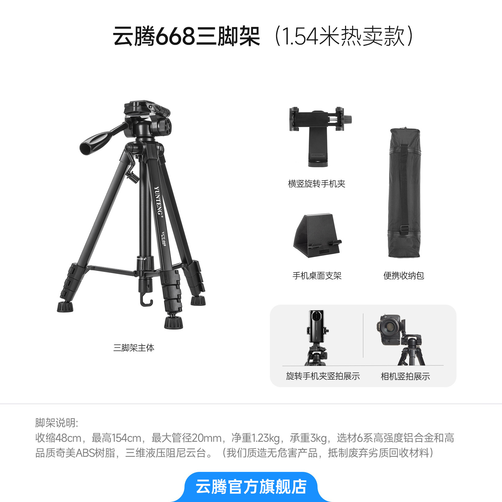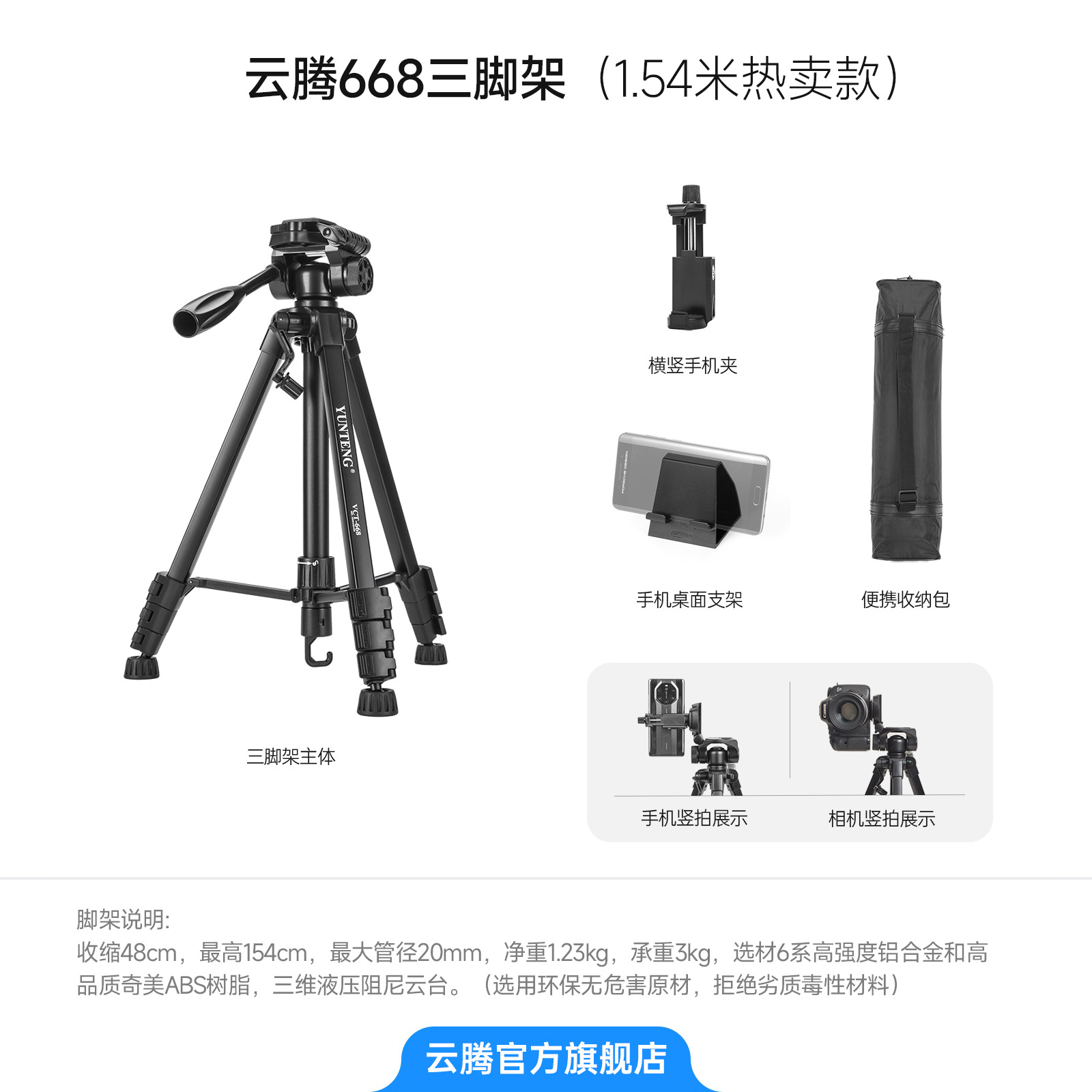 668 휴대용 유압 짐벌 삼각대 마이크로 SLR 카메라 휴대 전화 카메라 라이브 방송 바닥 스탠드 촬영 보조 조명