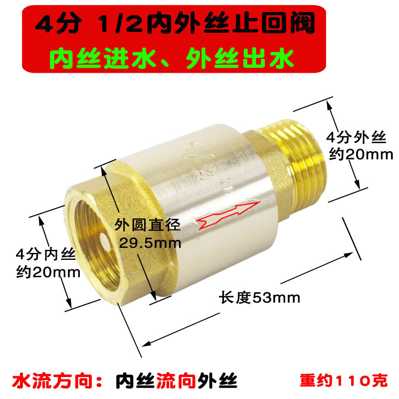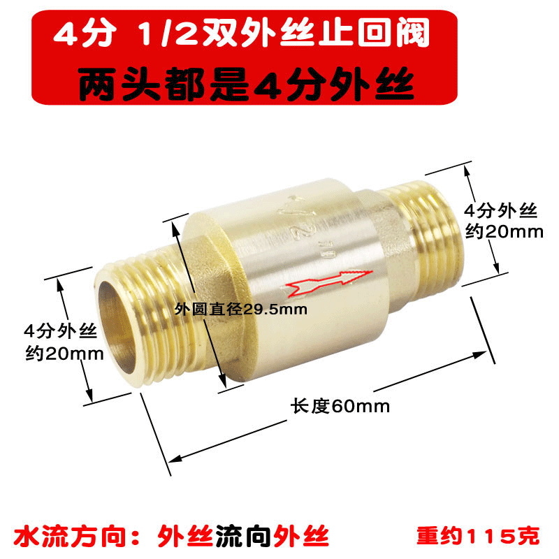 전동수직 체크밸브, 스프링 단방향 밸브, 워터 스톱 밸브, 수도관 나사산, 내부 및 외부 와이어, 4포인트 및 6포인트 분할 구리 코어스토어 가기