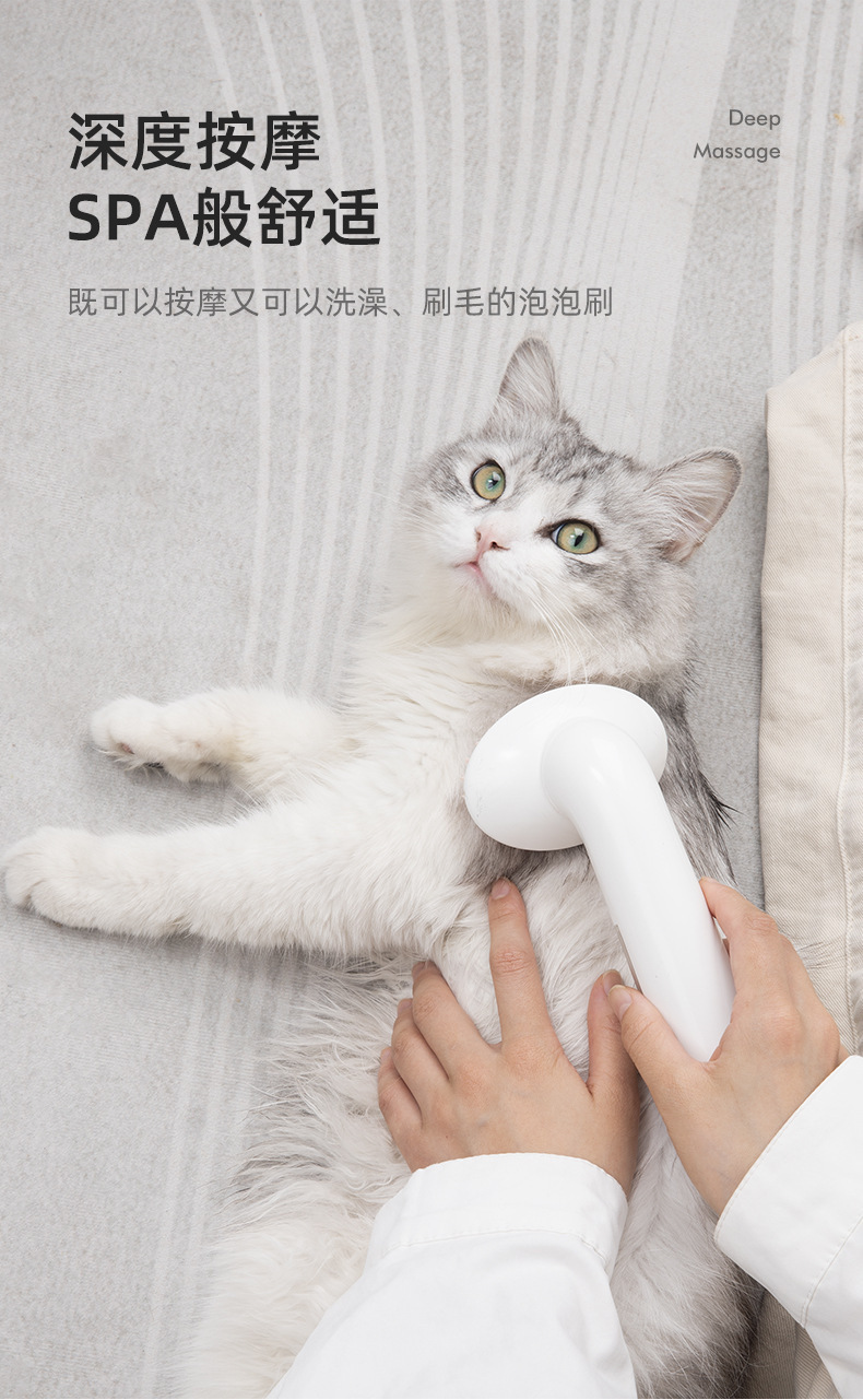 애완동물 목욕 브러시, 고양이와 강아지 목욕 버블 브러시, 긴 손잡이 실리콘 목욕 브러시, 목욕 마사지 3-in-1스토어 가기