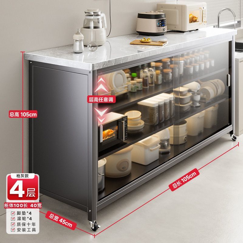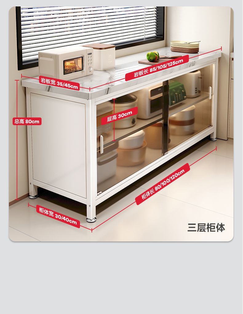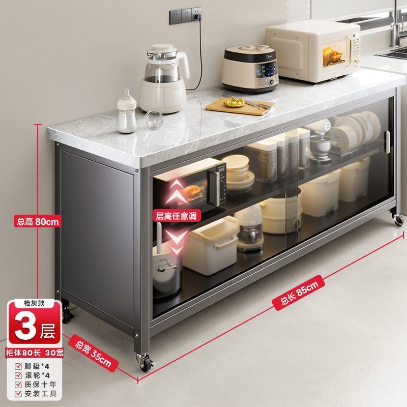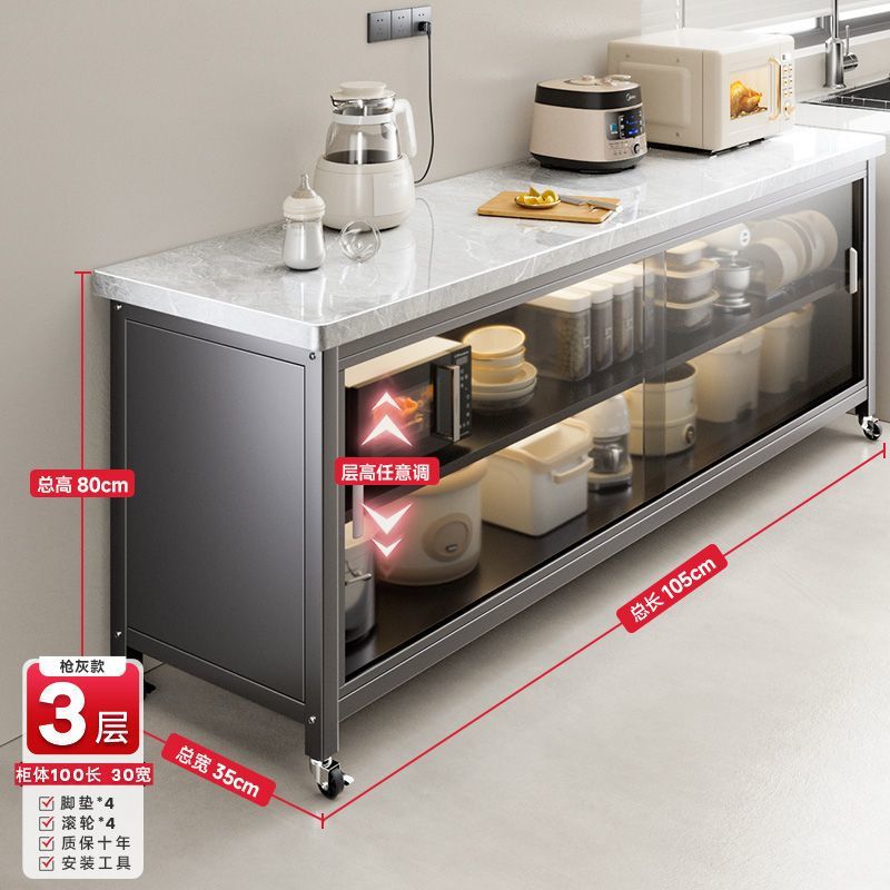 • 건그레이 + 설산 슬레이트 조리대 + 강화유리 도어 + 품질 검사 보고서 - 캐비닛 3겹 길이 80cm, 너비 40cm - 발 패드 장착.