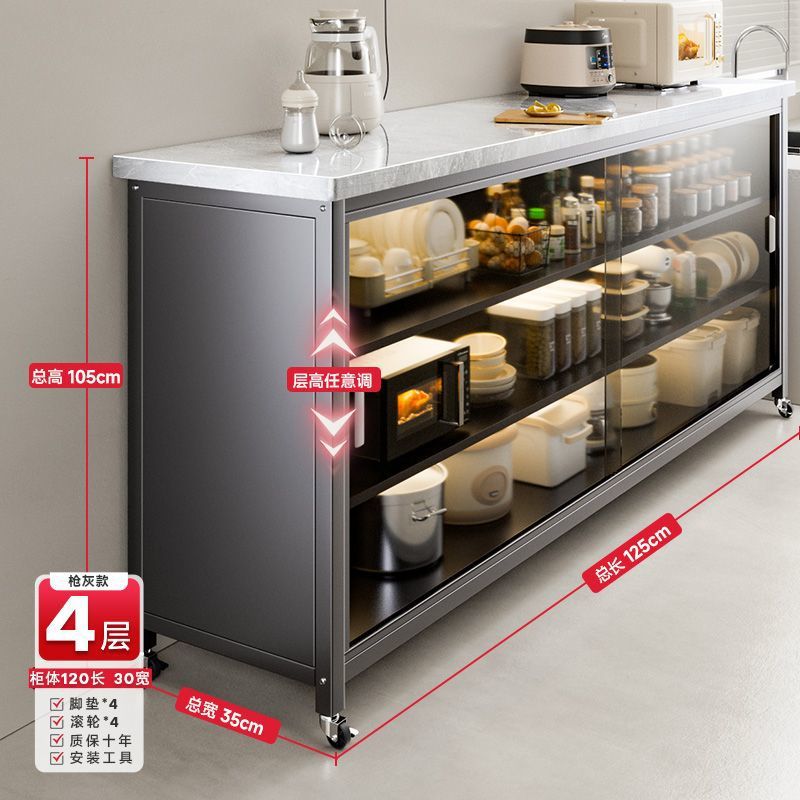 • 건그레이 + 설산 슬레이트 조리대 + 강화유리 도어 + 품질 검사 보고서 - 캐비닛 4겹 길이 120 폭 40 - 발 패드 장착.