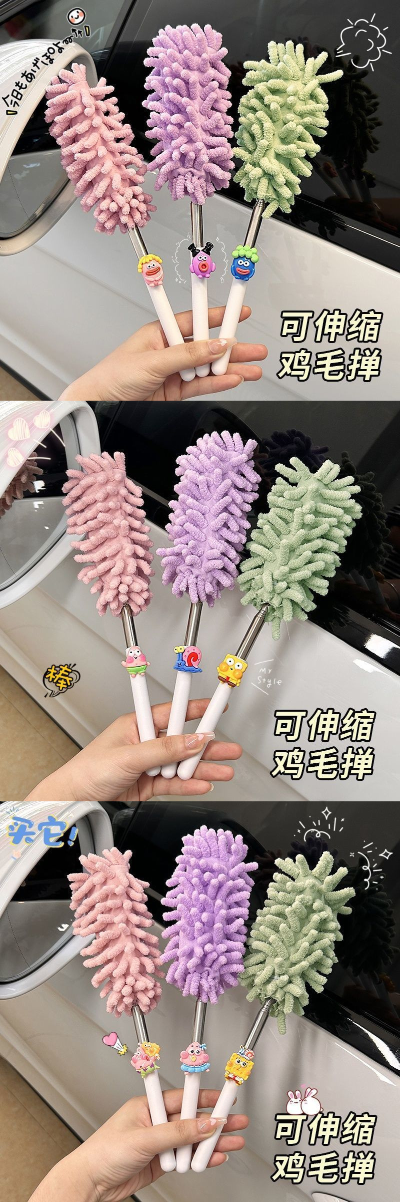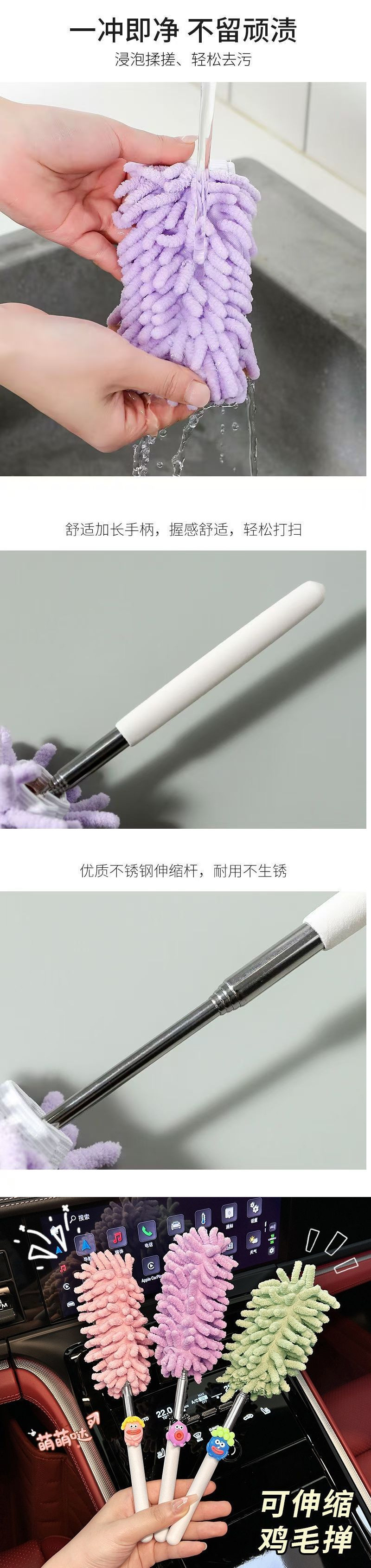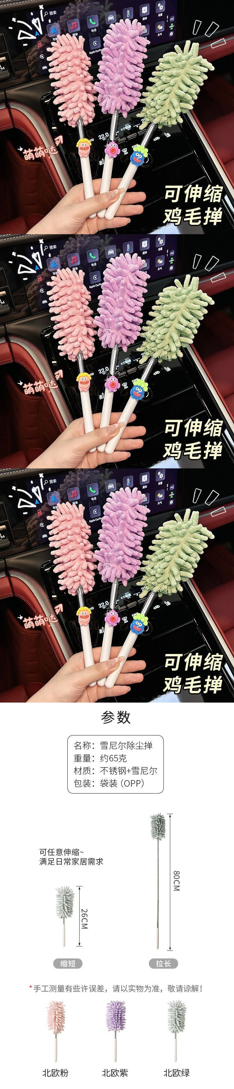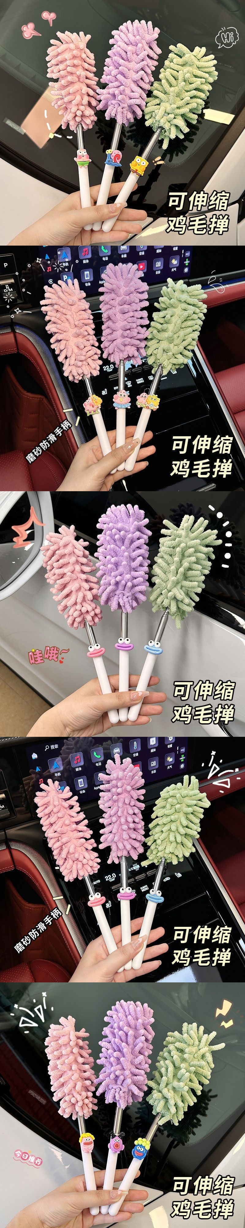 자동차용 특수 먼지떨이, 접이식 및 분리형, 귀여운 만화 인터넷 연예인 자동차 틈새 청소 브러시, 깃털 먼지떨이스토어 가기