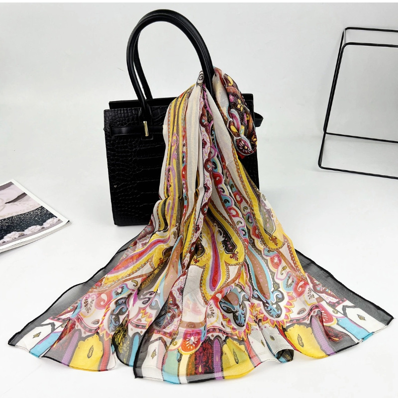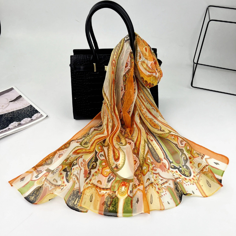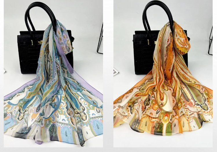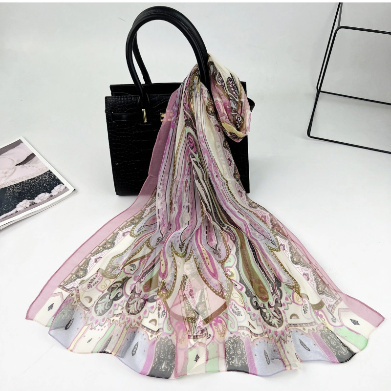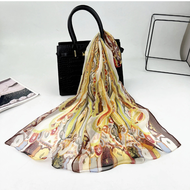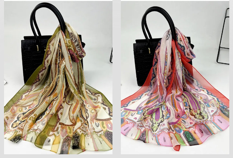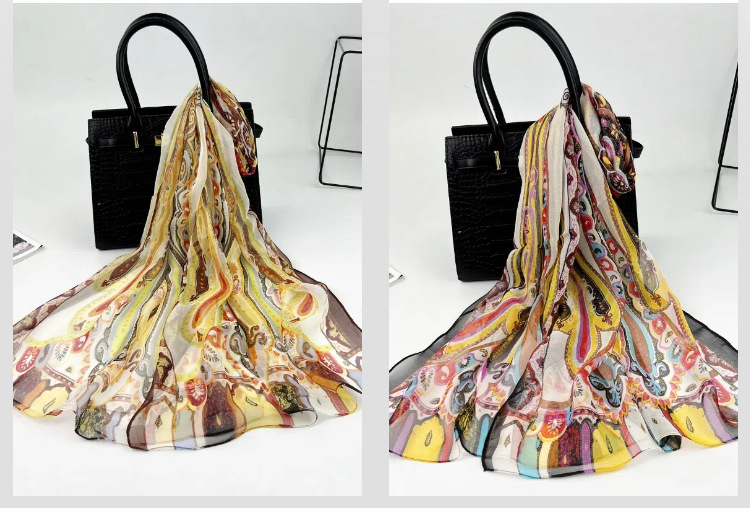 문학적 복고풍 프린트 롱 스카프 50*160 다용도 롱 실크 스카프 실크 느낌 조젯 스카프 얇은 스카프 숄스토어 가기