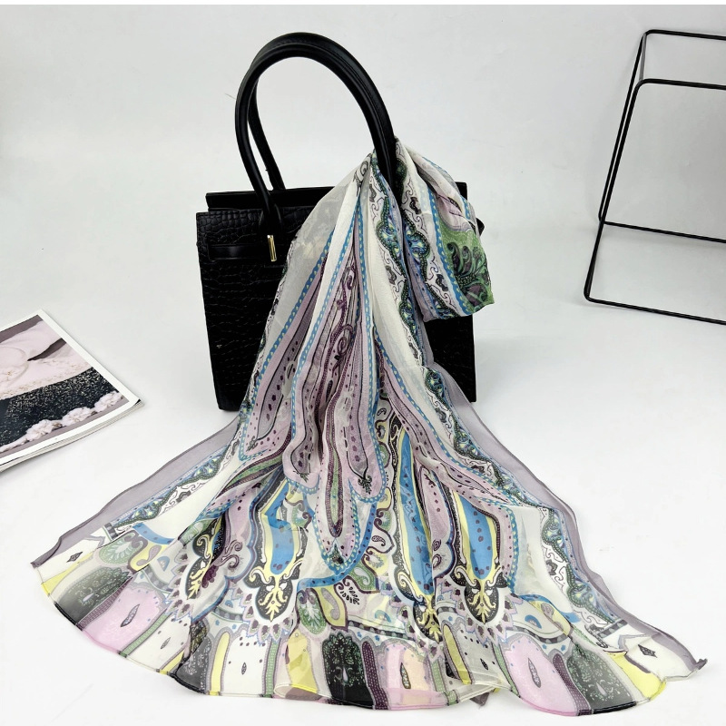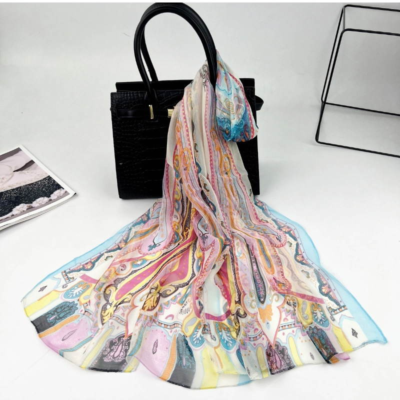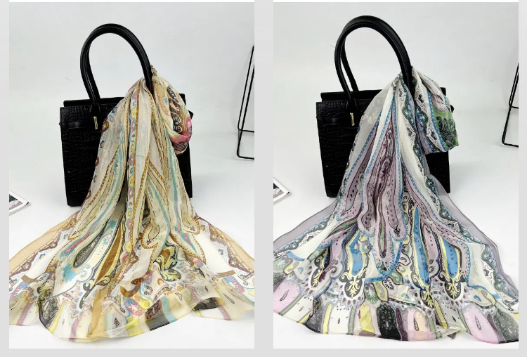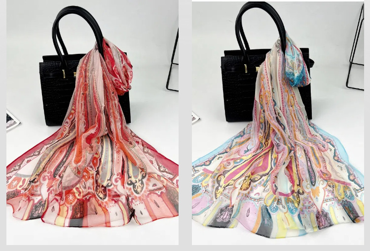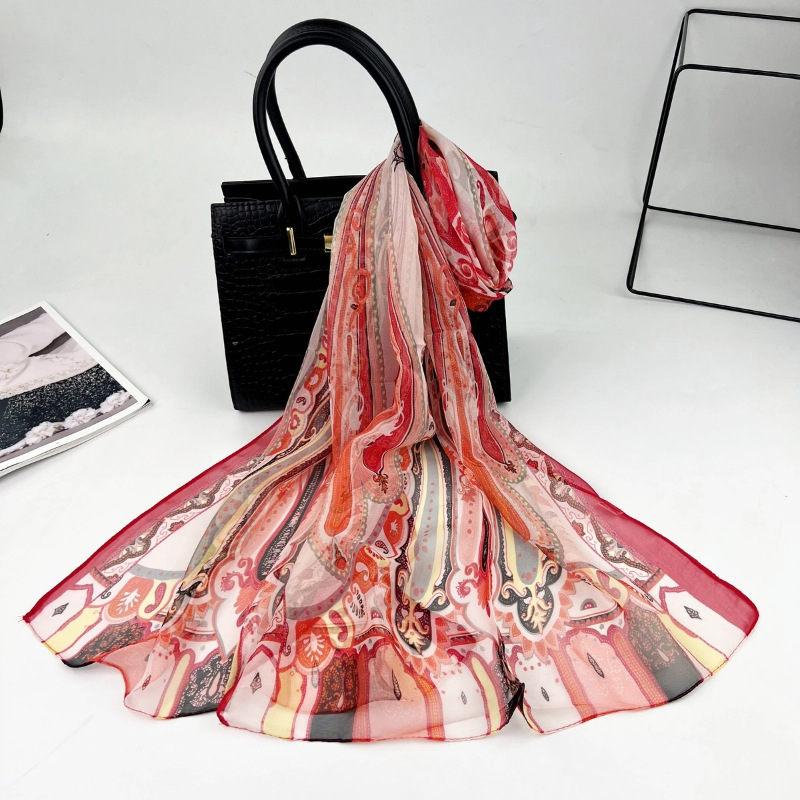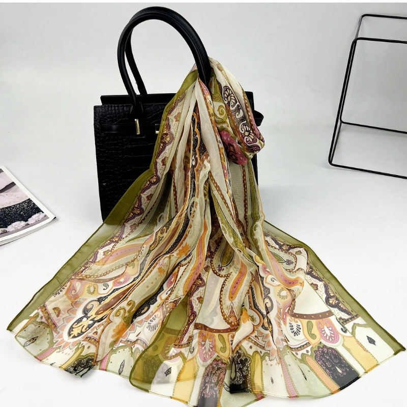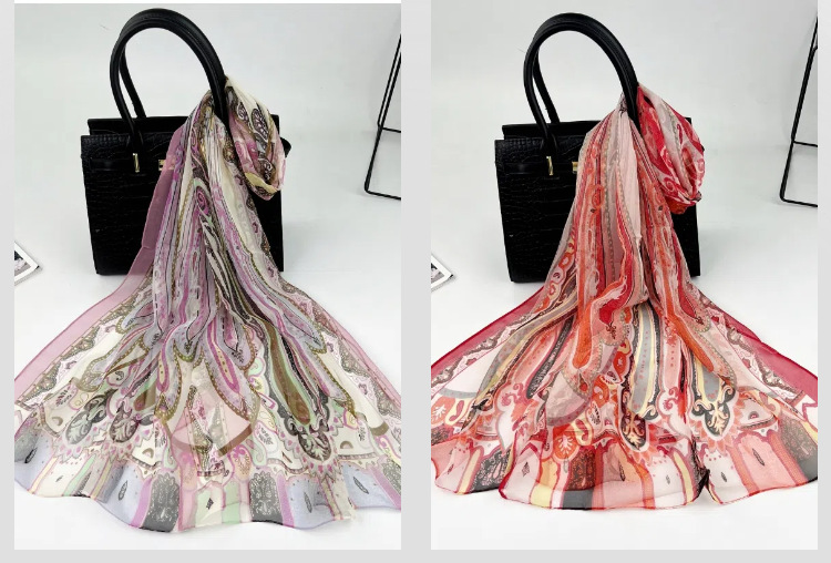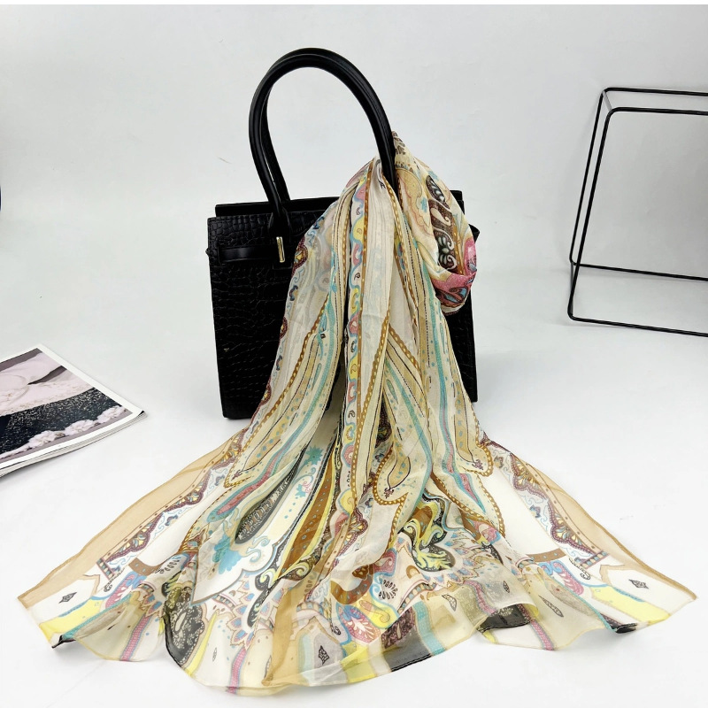 문학적 복고풍 프린트 롱 스카프 50*160 다용도 롱 실크 스카프 실크 느낌 조젯 스카프 얇은 스카프 숄스토어 가기