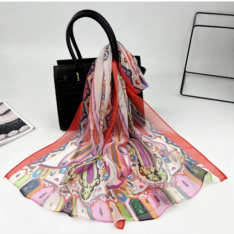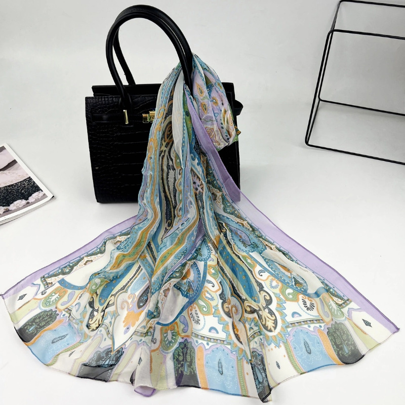 문학적 복고풍 프린트 롱 스카프 50*160 다용도 롱 실크 스카프 실크 느낌 조젯 스카프 얇은 스카프 숄