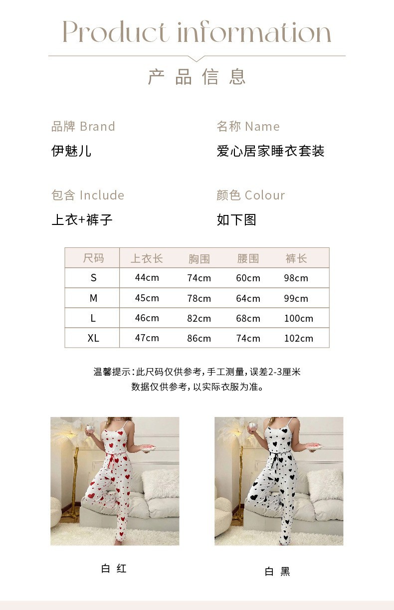 새로운 2024 유럽과 미국의 국경 간 인기 홈웨어 핏 스트립 러브 캐미솔 잠옷 여성용 바지 세트 외부 착용 가능스토어 가기