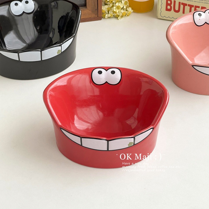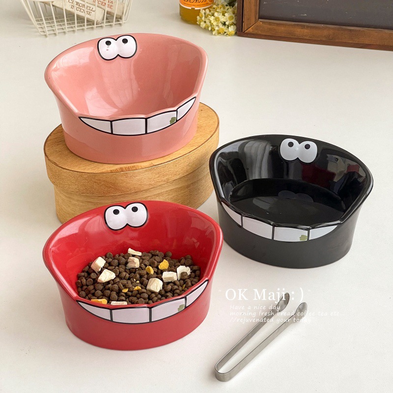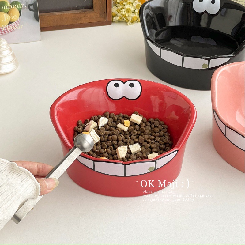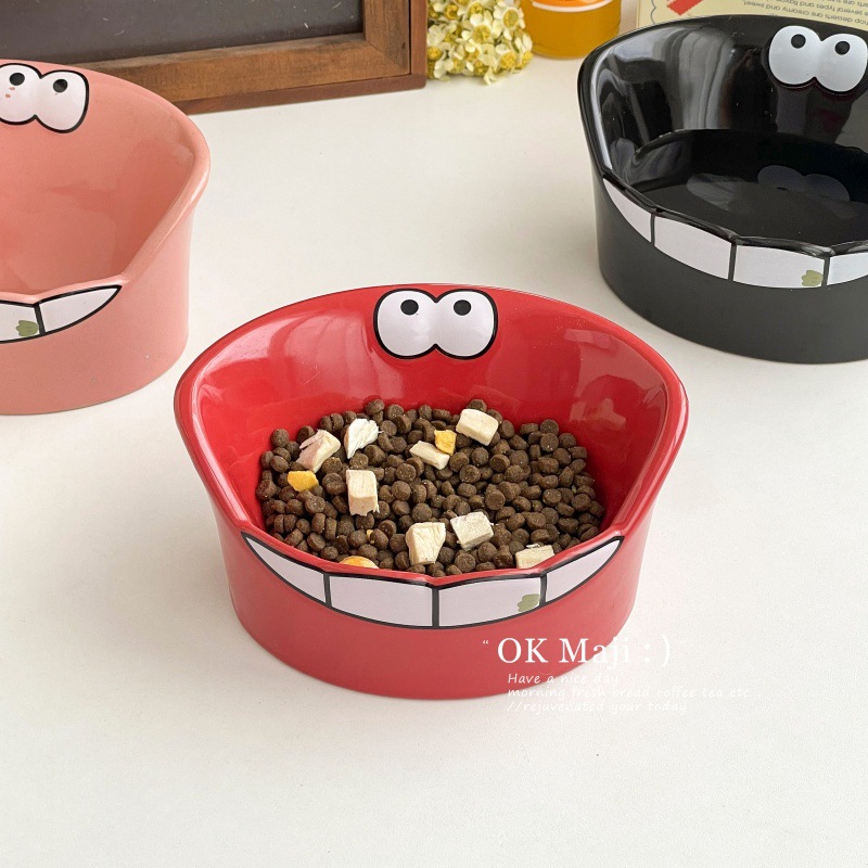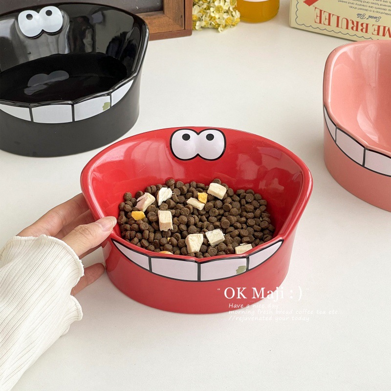 • 큰 입 괴물 세라믹 애완동물 그릇-레드