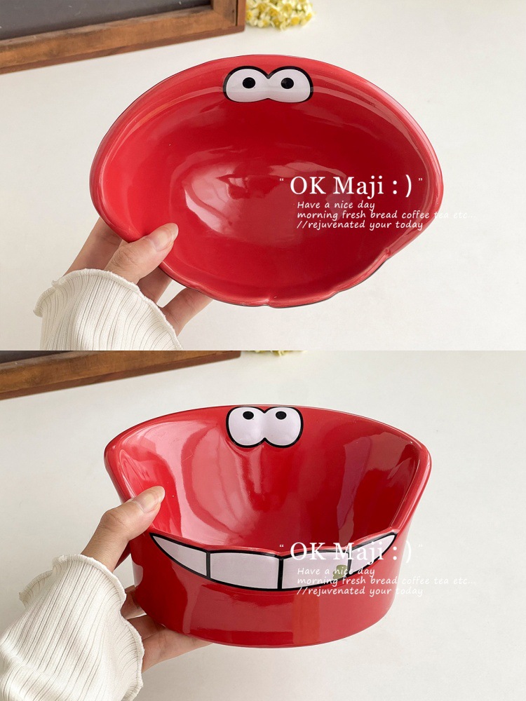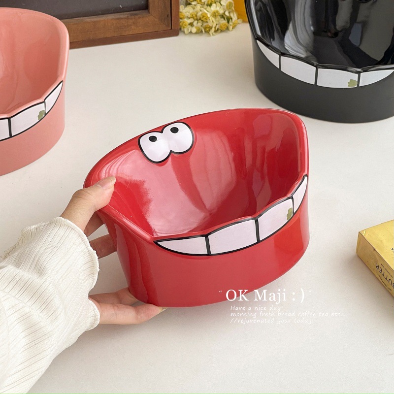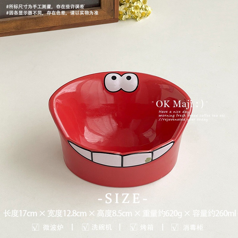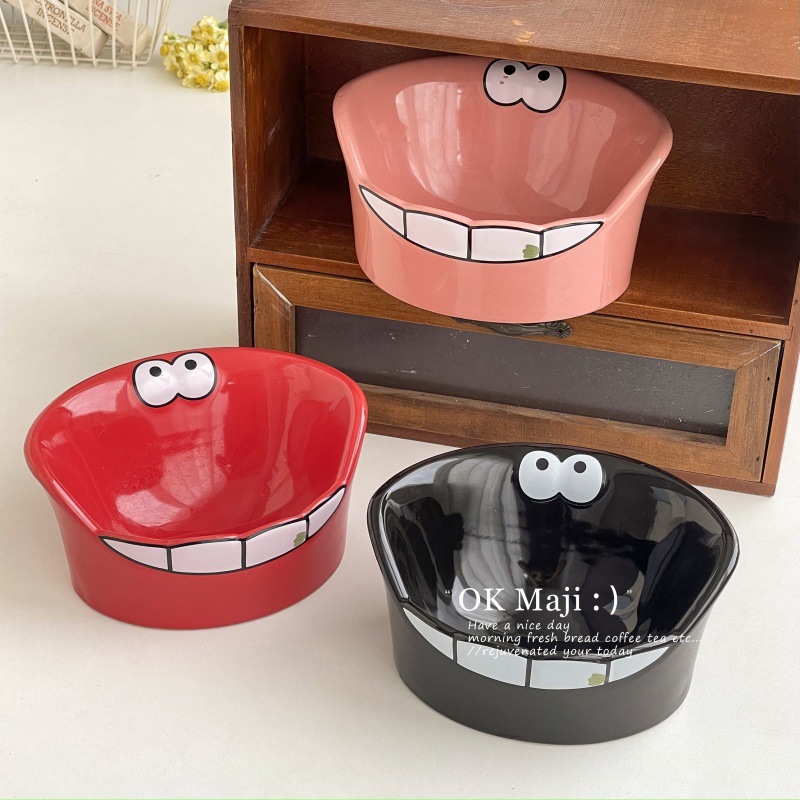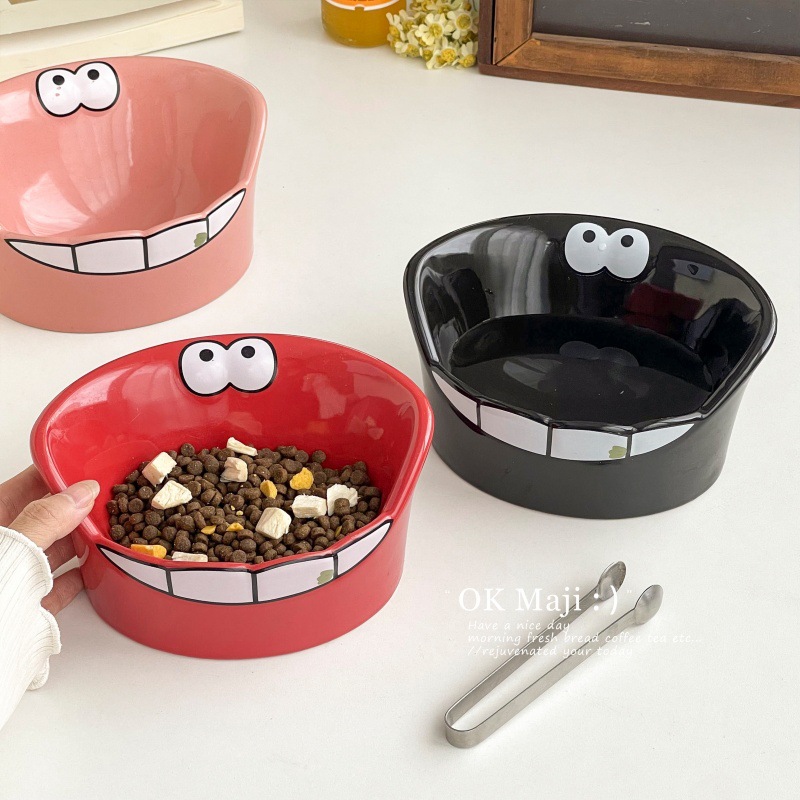 • 큰 입 괴물 세라믹 애완동물 그릇-레드