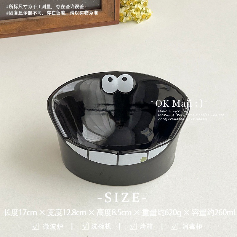 • 큰 입 괴물 세라믹 애완동물 그릇-블랙