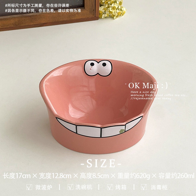 • 큰 입 괴물 세라믹 애완동물 그릇-핑크