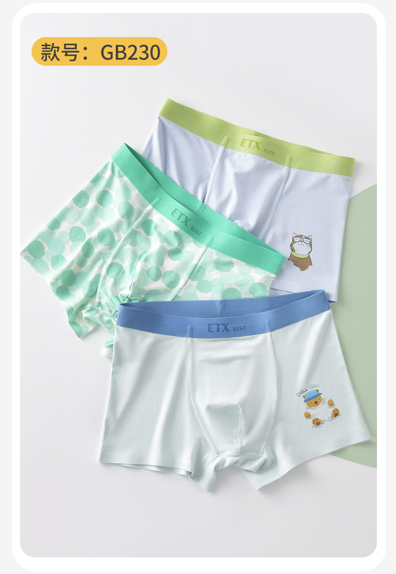 여름 시원한 무봉제 남아용 사각팬티, 중대형 아동용 A형 사각팬티, 심플한 청소년 속옷 제조업체 도매스토어 가기