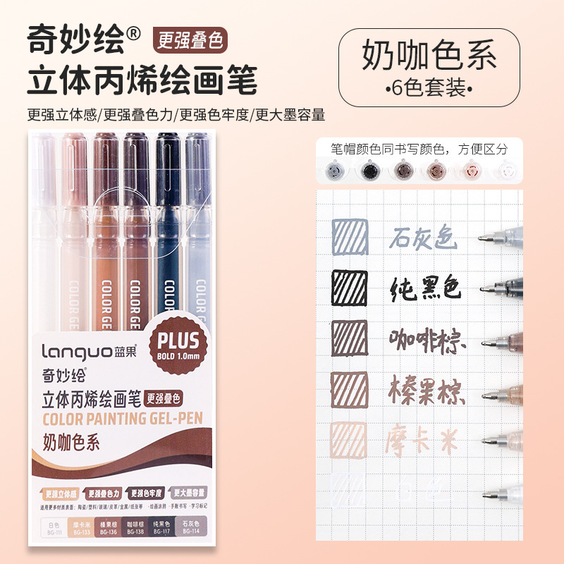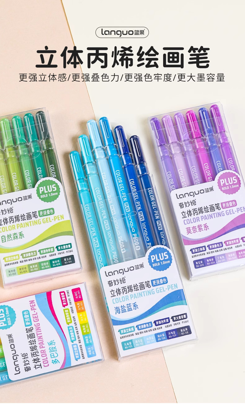 Languo 아크릴 페인팅 펜은 학생 미술을 위한 색상으로 쌓을 수 있습니다. 대용량 핸드북 펜 1.0mm 높은 외관