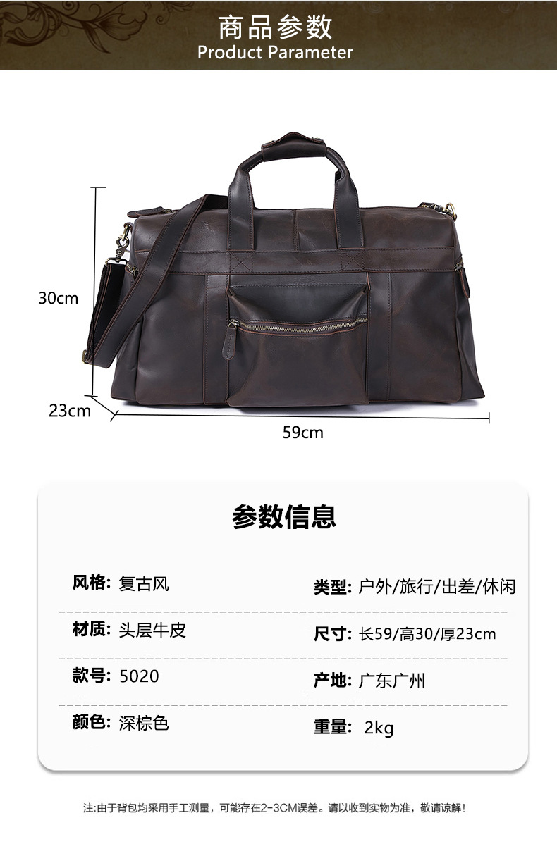 수입 1층 크레이지 호스 소가죽 수하물 가방 대외 무역 인기 판매 유럽과 미국 남성 대용량 23inch 휴대용 여행 가방