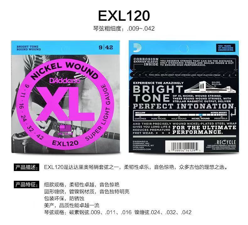 국경 간 아마존 베스트셀러 D'Addario 일렉트릭 기타 현 6 현 세트 EXL120 EXL110 세트