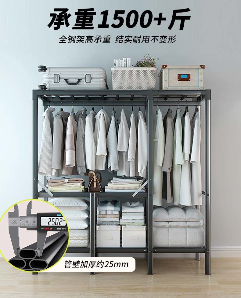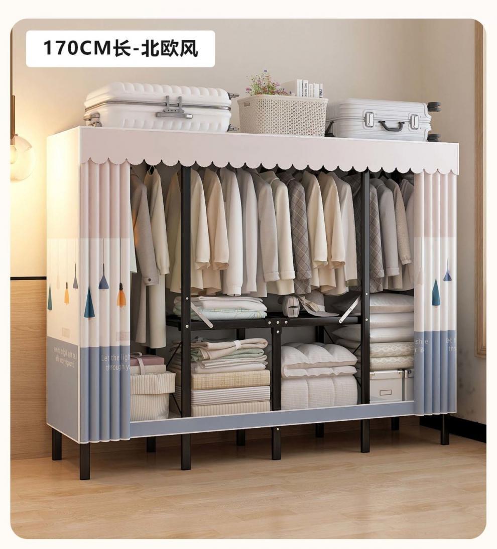 접이식 옷장 간단한 천 옷장 강철 파이프 두꺼운 보관 캐비닛 전체 강철 프레임 조립 침실 홈 옷장 캐비닛
