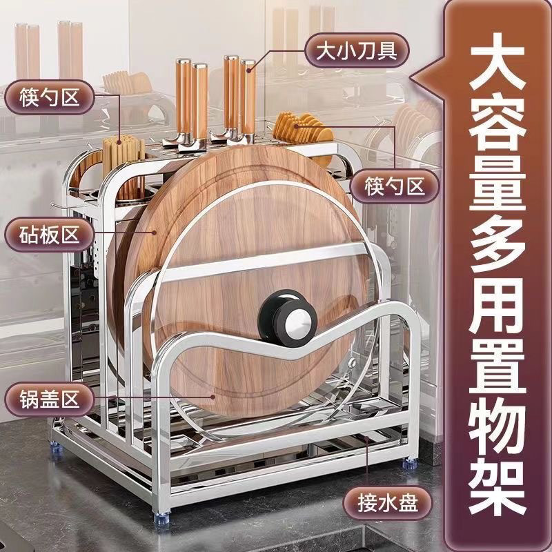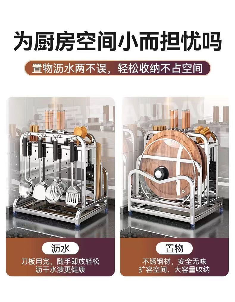 • [밝은 색상 확대] 이중 젓가락 꽂이 + 도마 꽂이 + 냄비 뚜껑 꽂이 - [두꺼운 304 스테인레스 일체형 칼판 꽂이] 녹슬지 않음