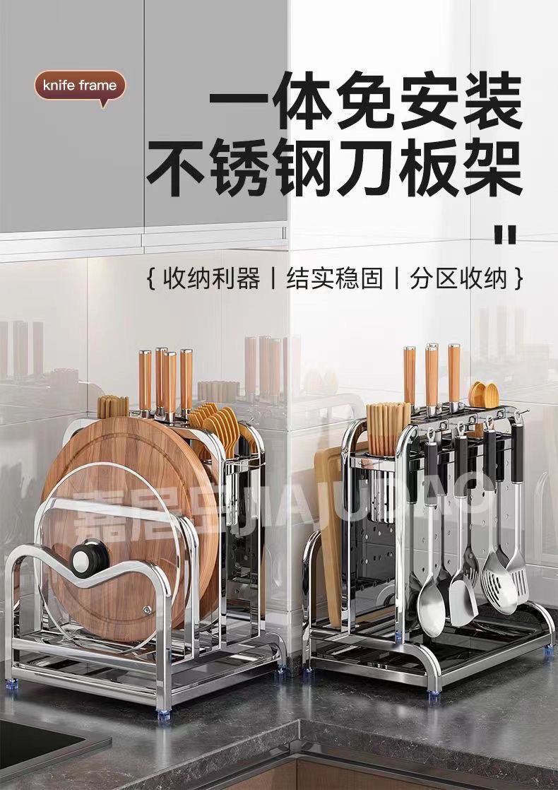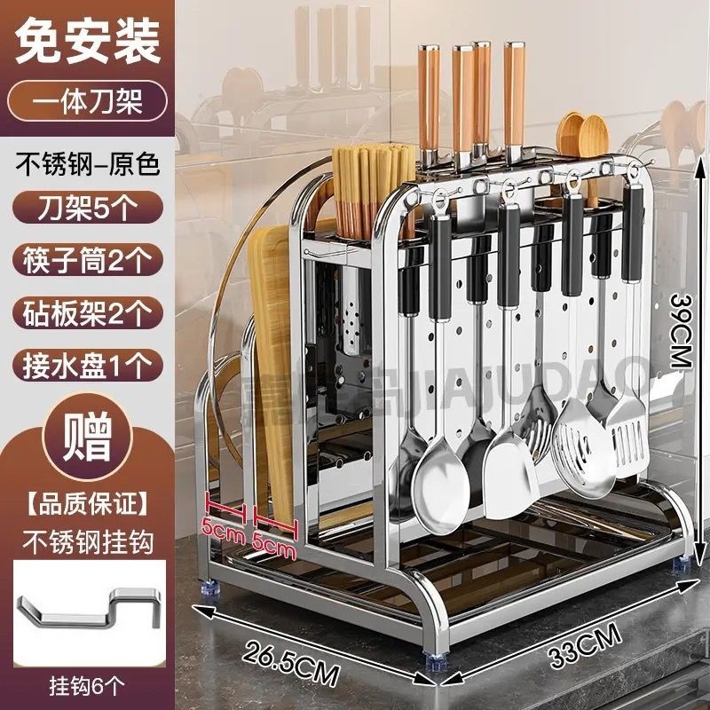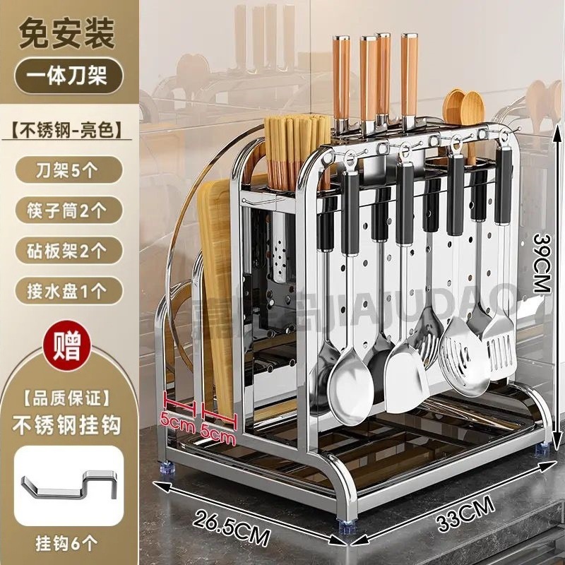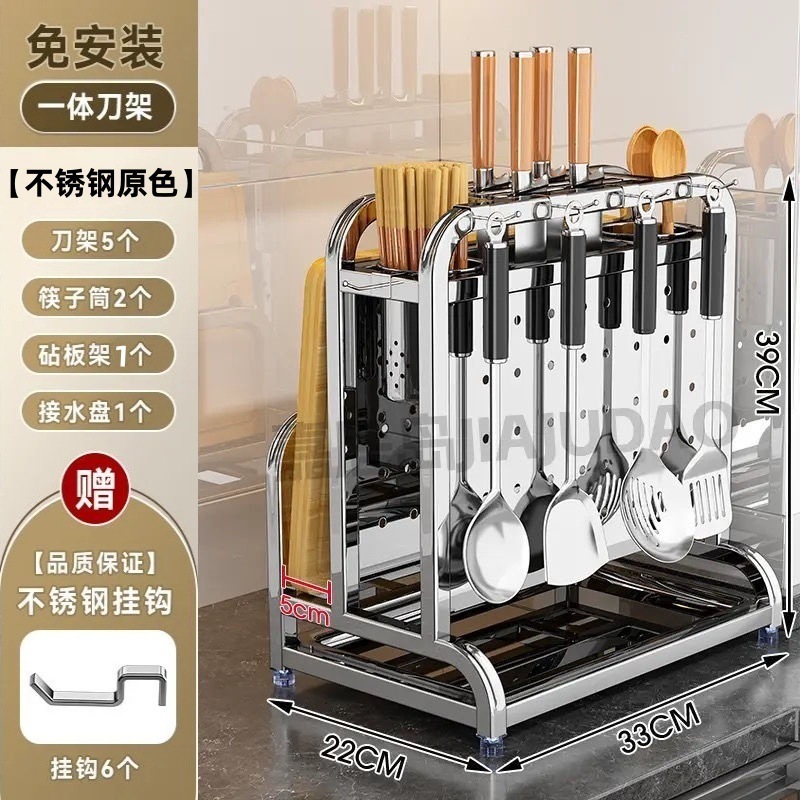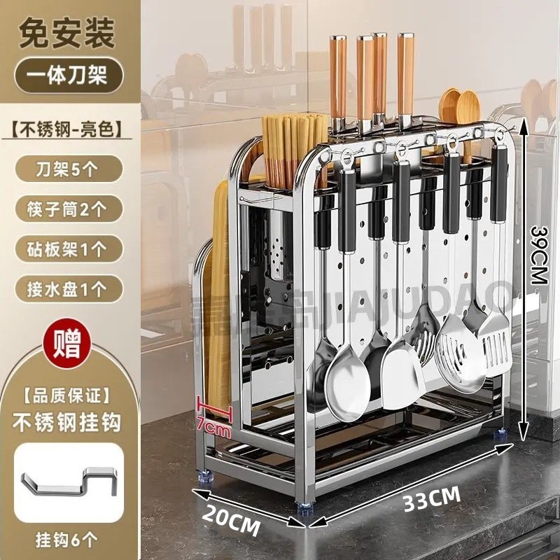 304 스테인레스 스틸 주방 칼 홀더, 야채 칼, 주걱, 젓가락 케이지, 일체형 칼 및 도마 보관함스토어 가기