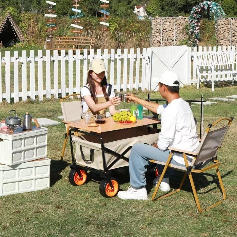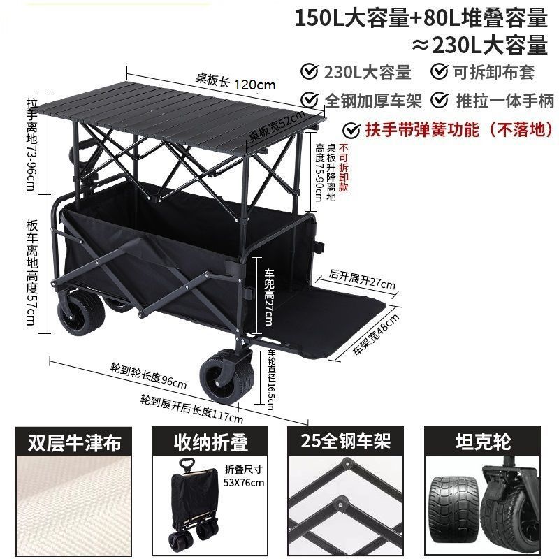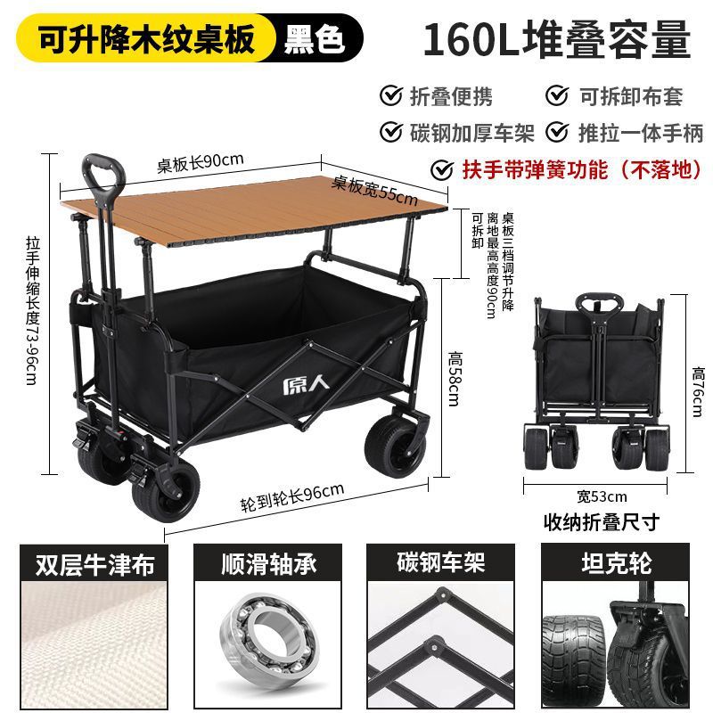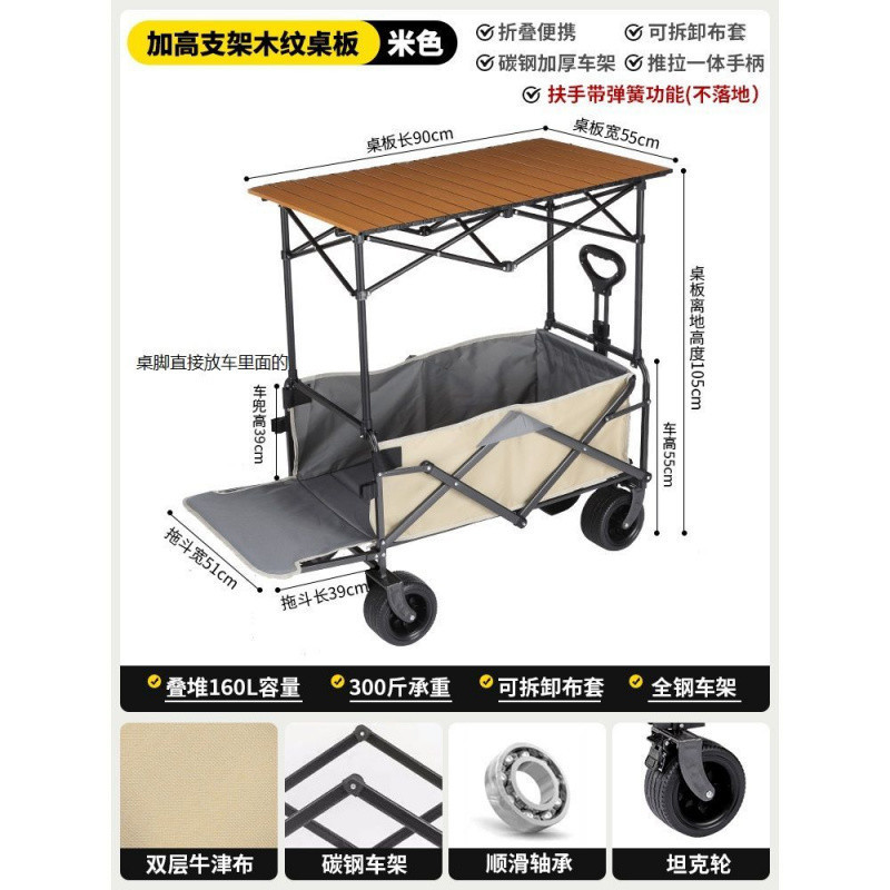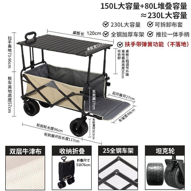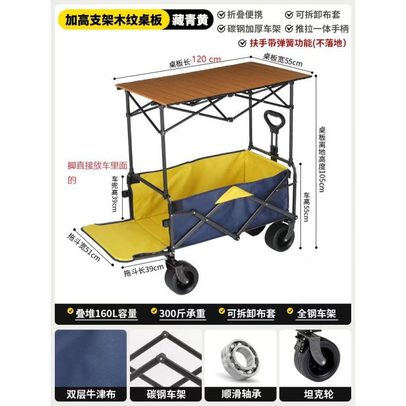 손으로 미는 간단한 소형 트롤리, 야외 접이식 캠핑카, 캠핑용 대형 피크닉 트롤리, 기타 철제 트롤리스토어 가기