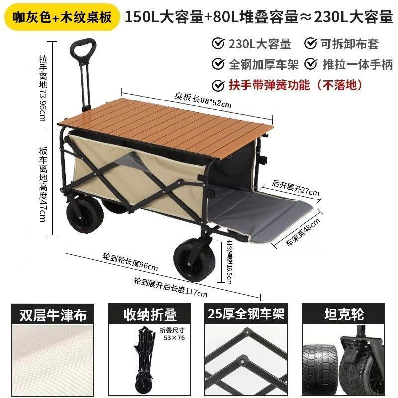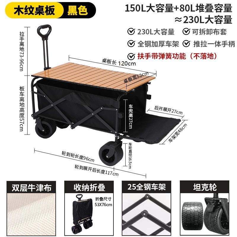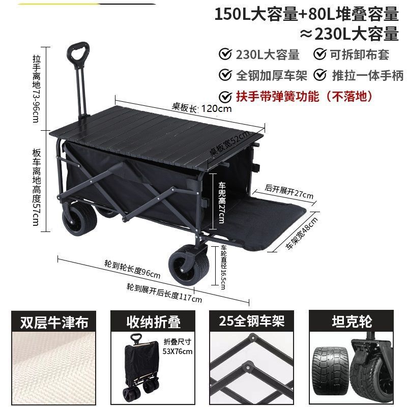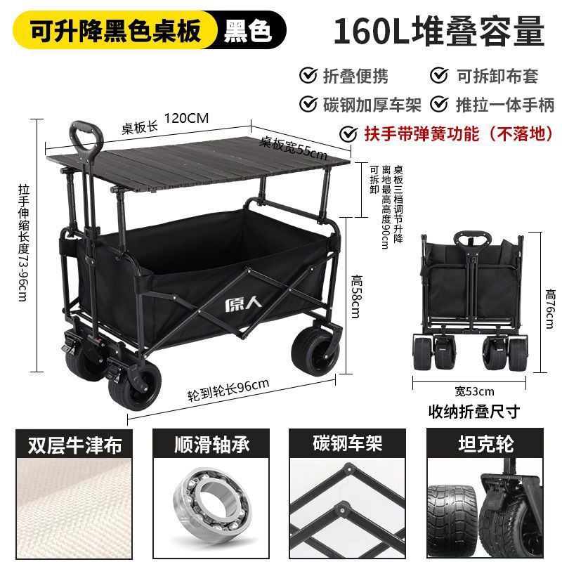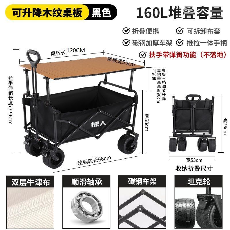 손으로 미는 간단한 소형 트롤리, 야외 접이식 캠핑카, 캠핑용 대형 피크닉 트롤리, 기타 철제 트롤리