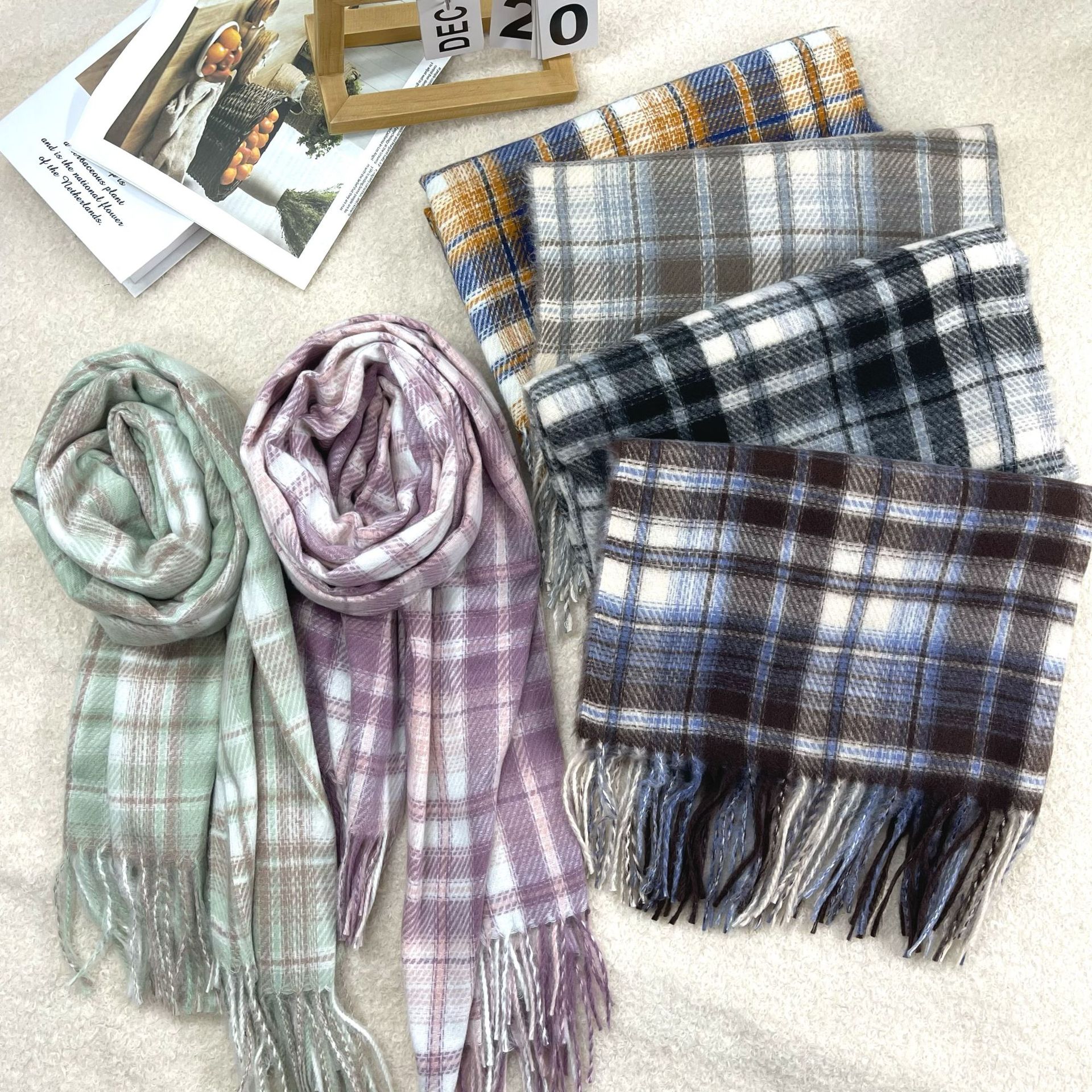 새로운 한국 스타일 분위기 모조 캐시미어 격자 무늬 스카프 가을, 겨울 스타일 학생 커플 스카프 목도리 스카프스토어 가기