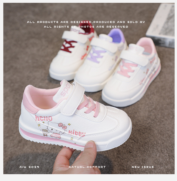 2025 봄과 가을 새로운 어린이 스포츠 신발 소녀 소년 신발 가죽 신발 큰 어린이를위한 만화 캐주얼 운동화