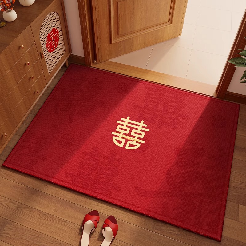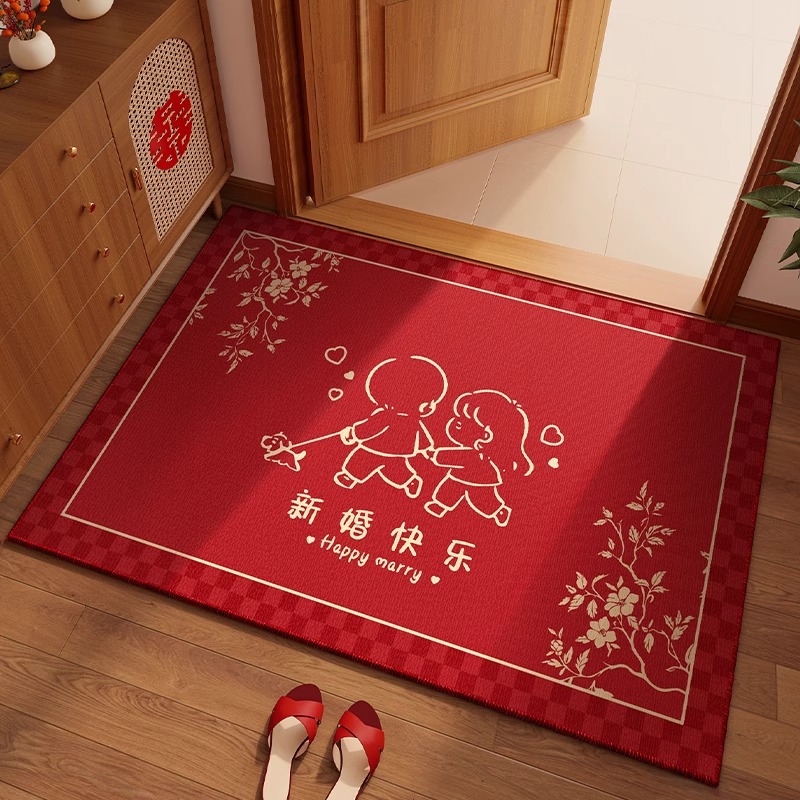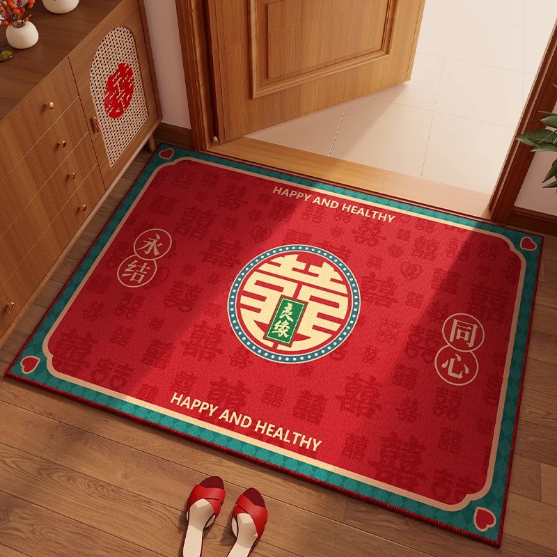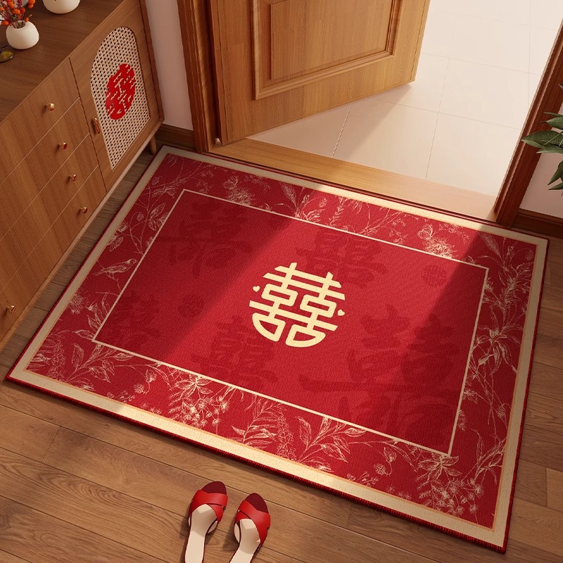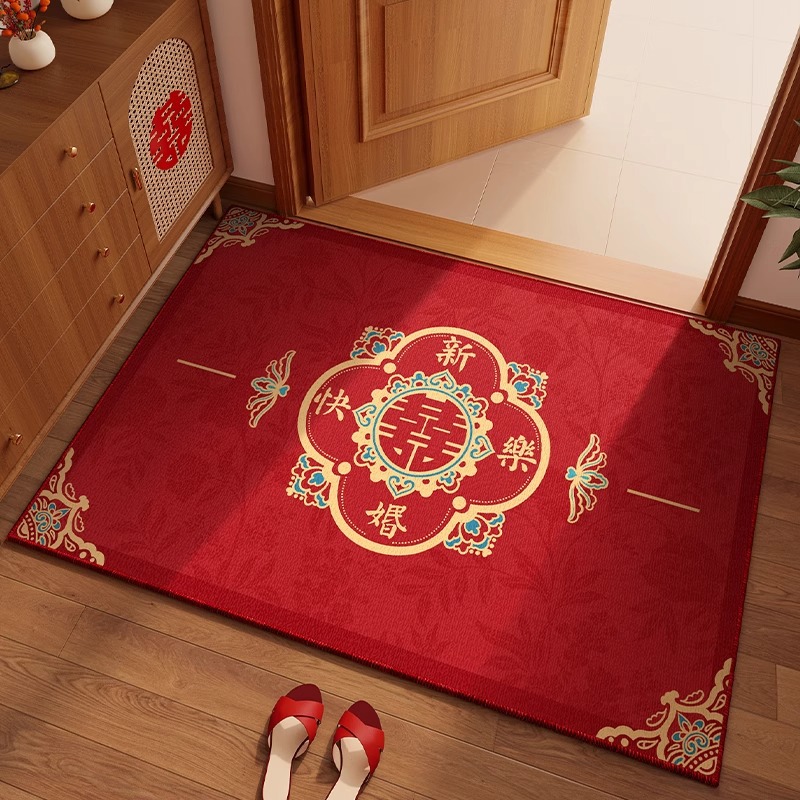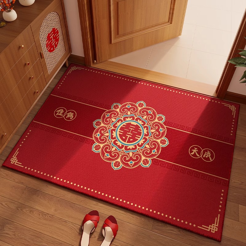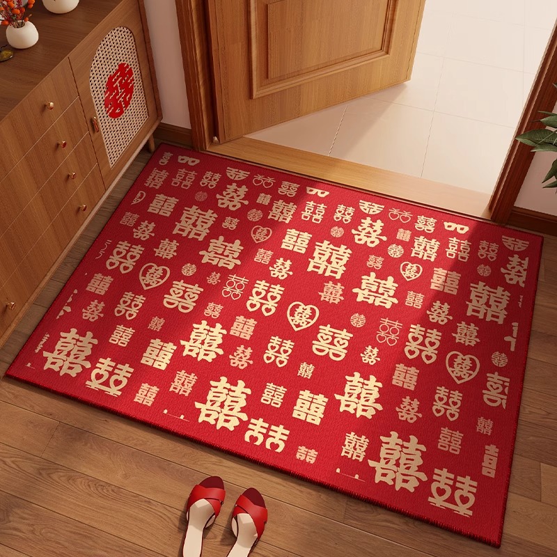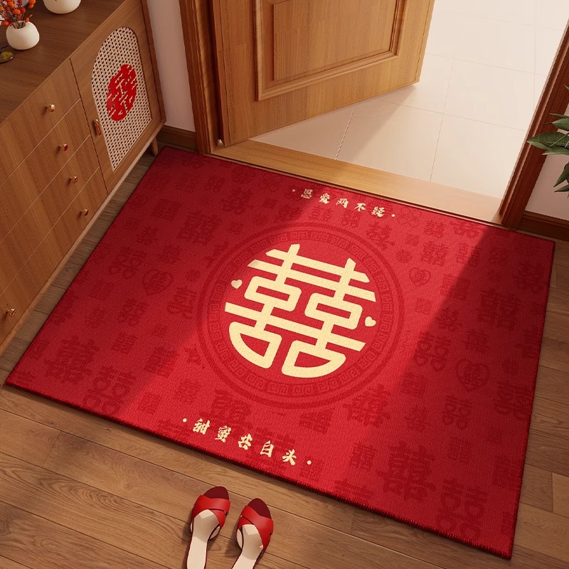 결혼 축하 문구가 있는 중국식 현관문 바닥매트, 축제 출입문, 레드카펫, 신혼부부 문매트, 웨딩룸 장식 바닥매트스토어 가기