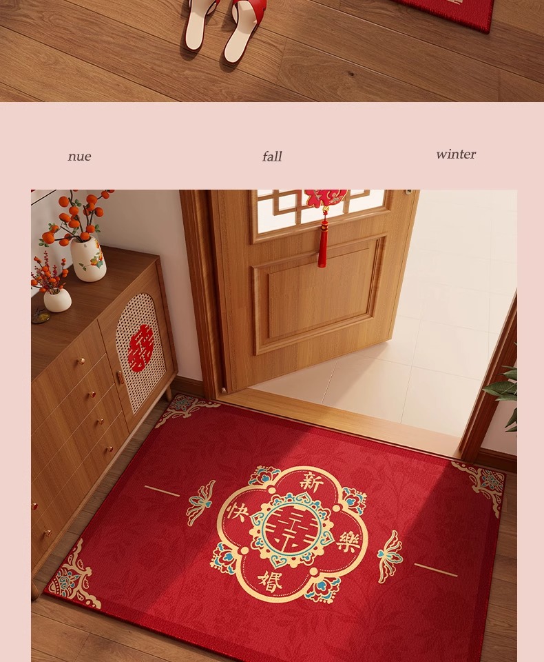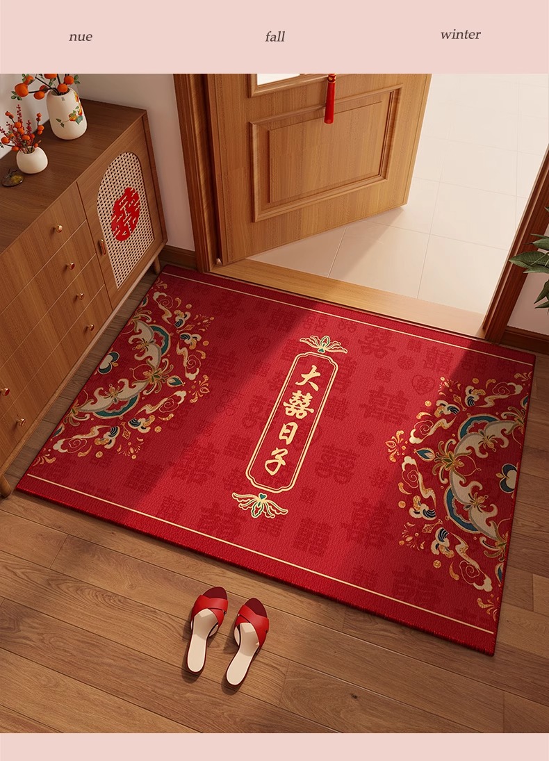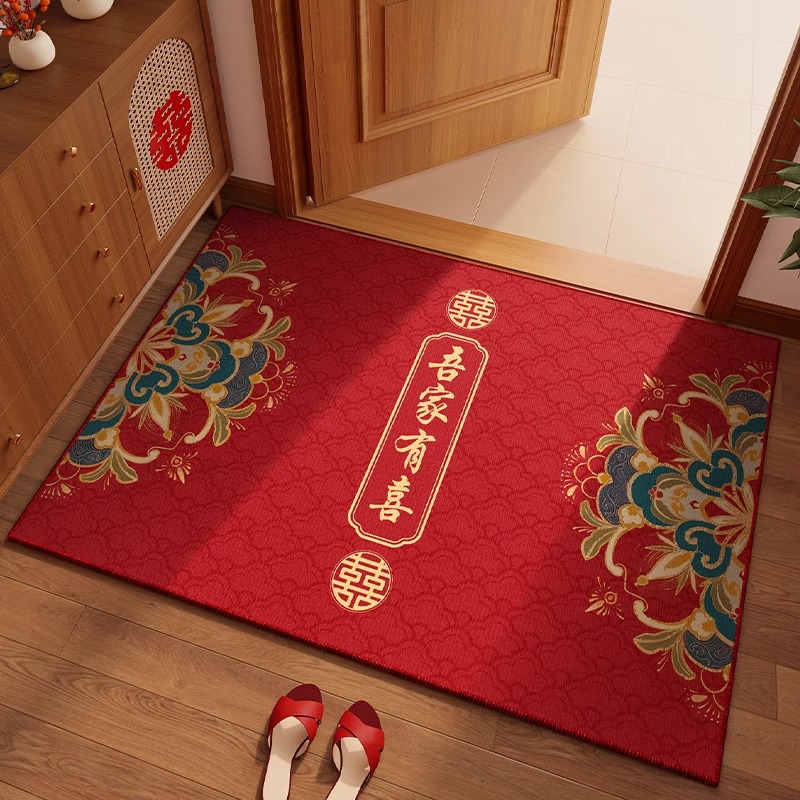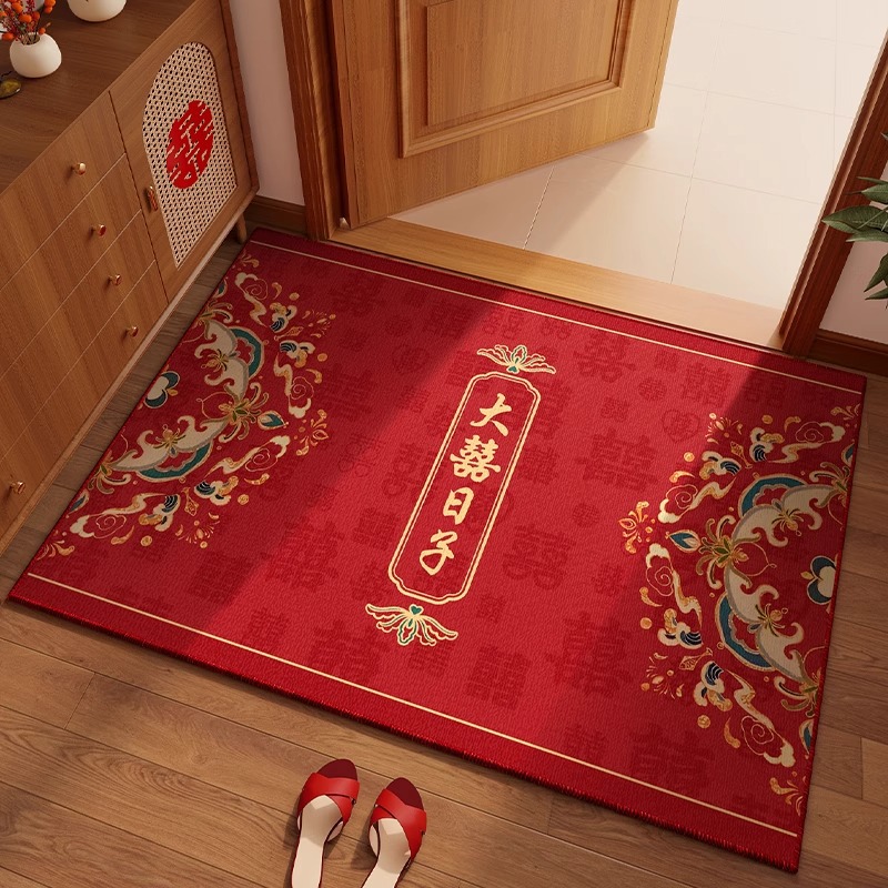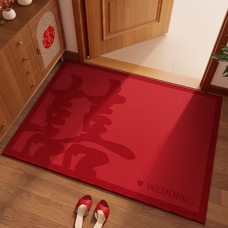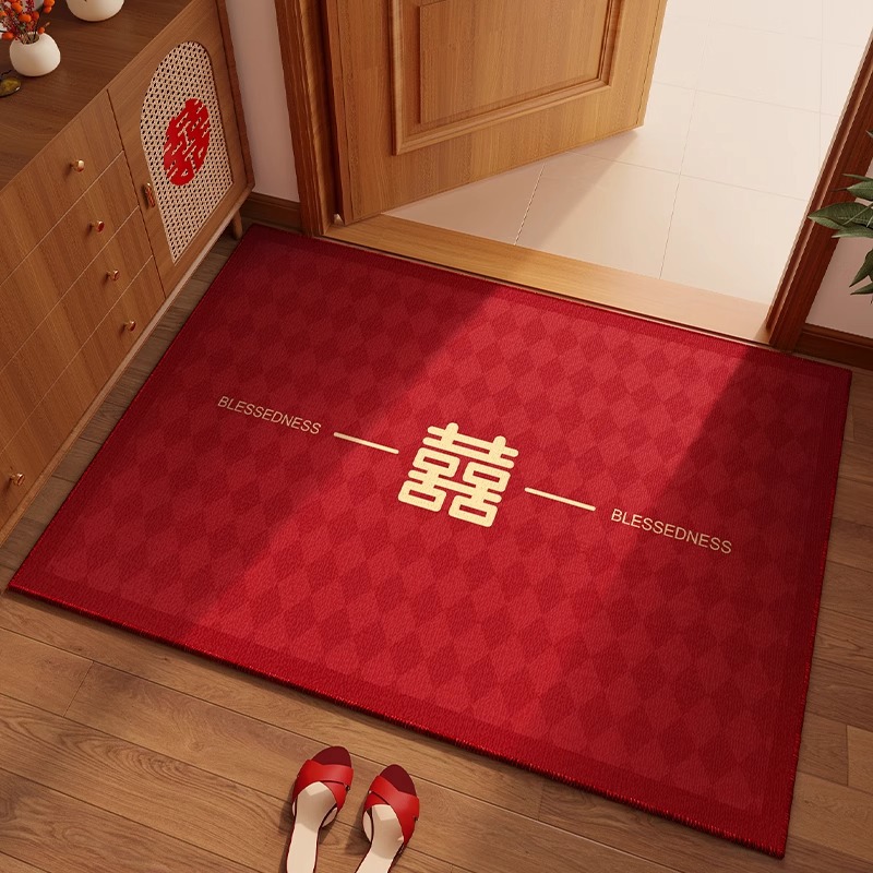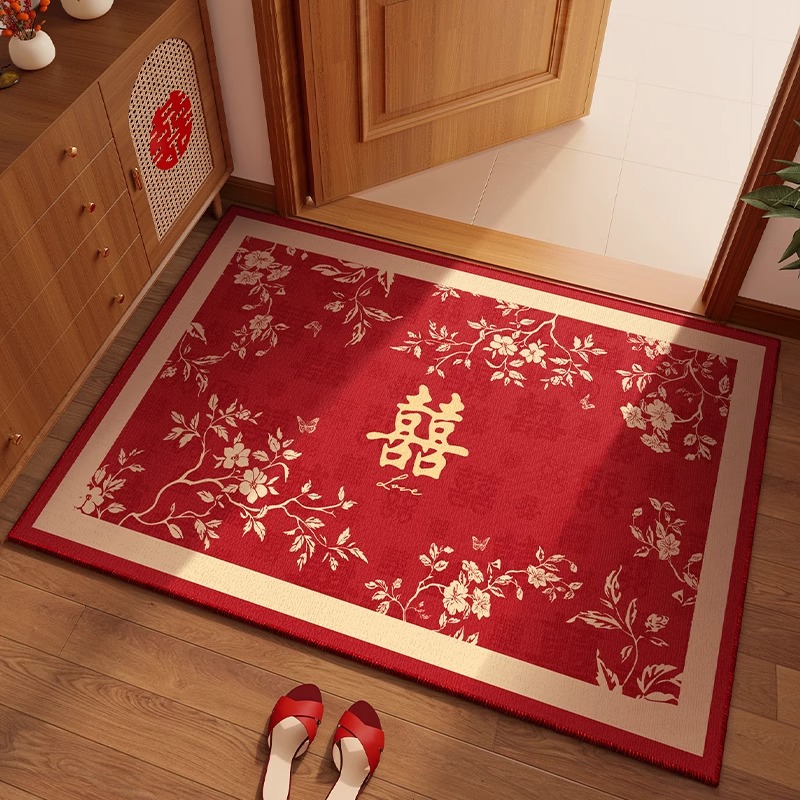 결혼 축하 문구가 있는 중국식 현관문 바닥매트, 축제 출입문, 레드카펫, 신혼부부 문매트, 웨딩룸 장식 바닥매트스토어 가기