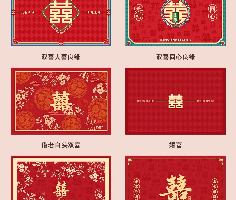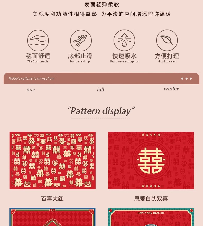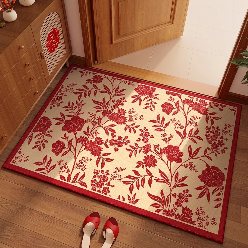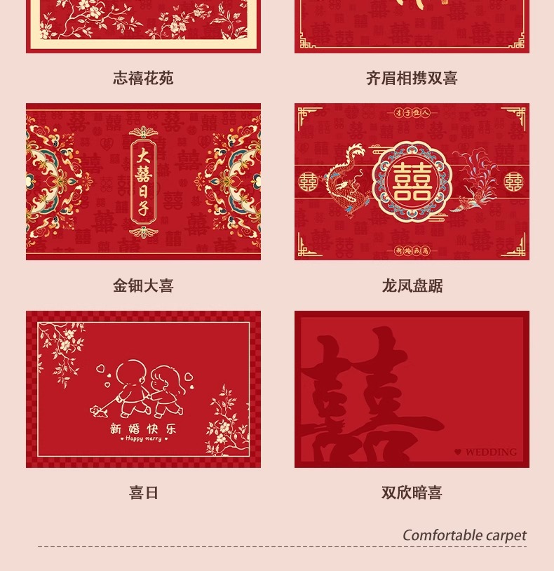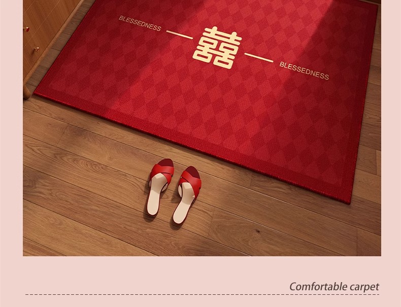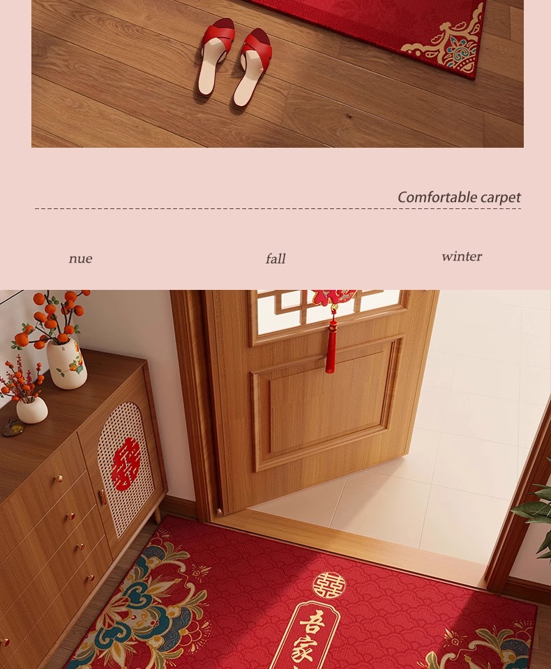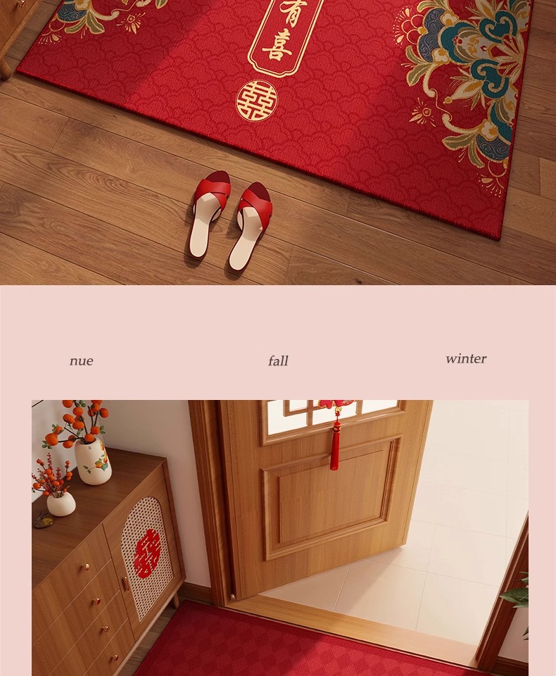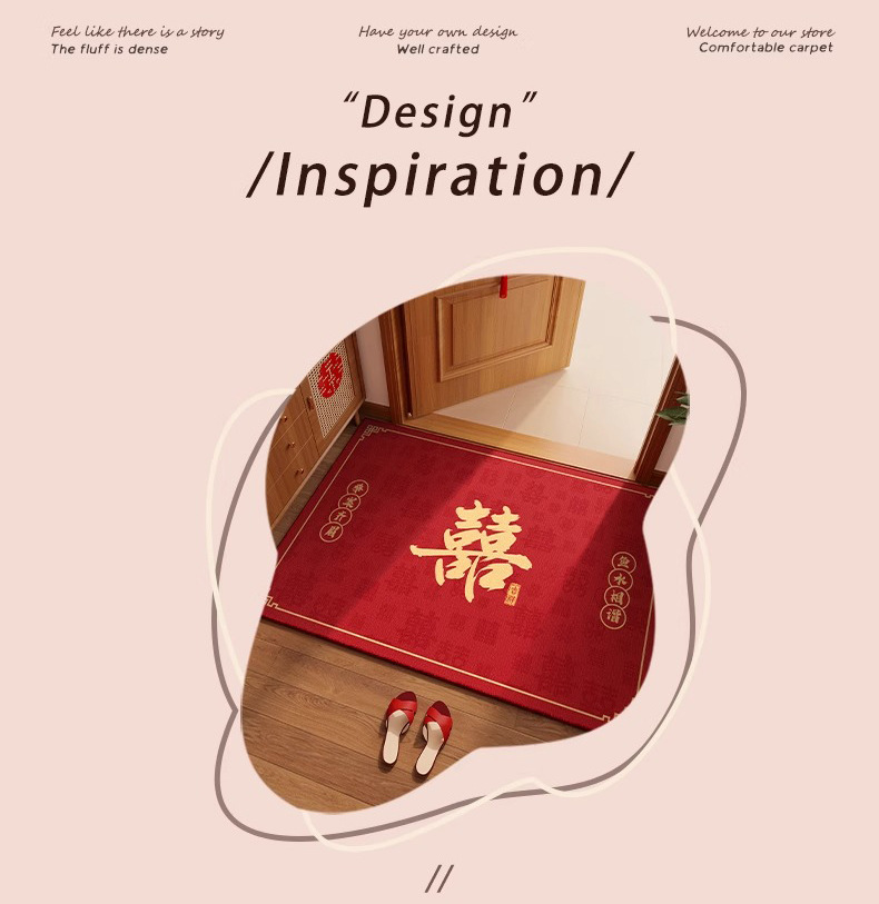 결혼 축하 문구가 있는 중국식 현관문 바닥매트, 축제 출입문, 레드카펫, 신혼부부 문매트, 웨딩룸 장식 바닥매트스토어 가기