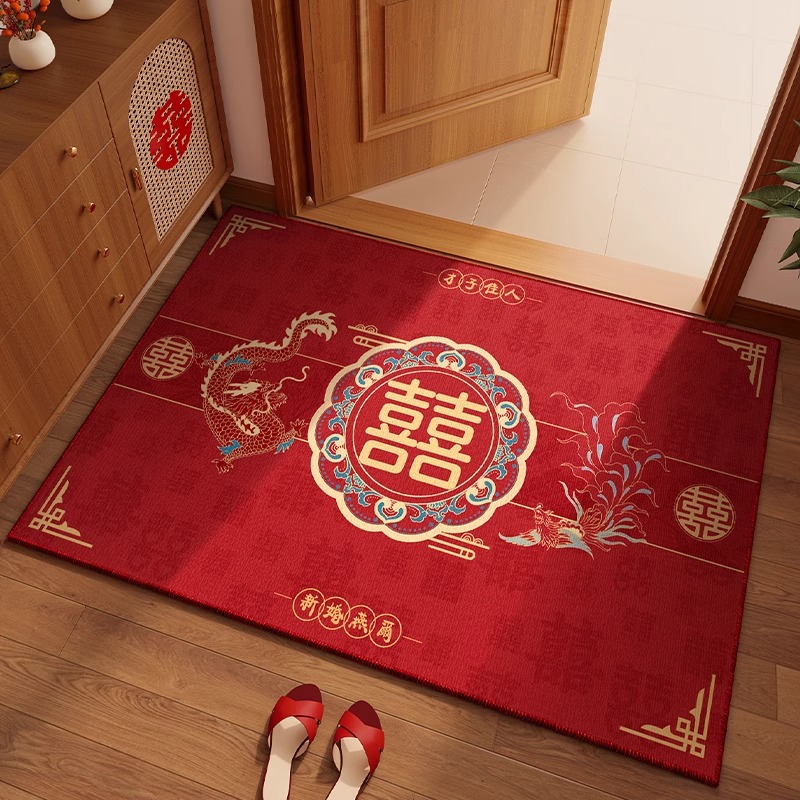 결혼 축하 문구가 있는 중국식 현관문 바닥매트, 축제 출입문, 레드카펫, 신혼부부 문매트, 웨딩룸 장식 바닥매트
