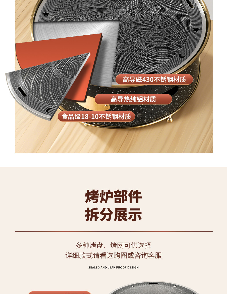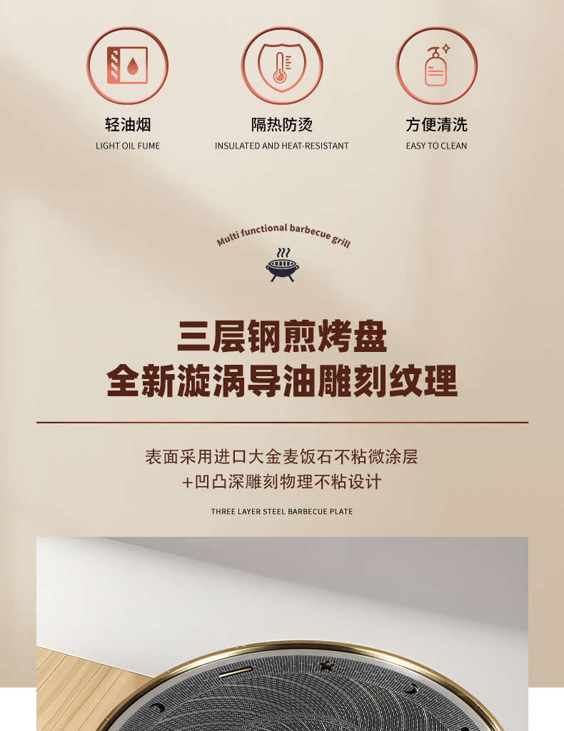 • 액세서리 5: 295 3층 강철 수입 대형 금 프라이팬