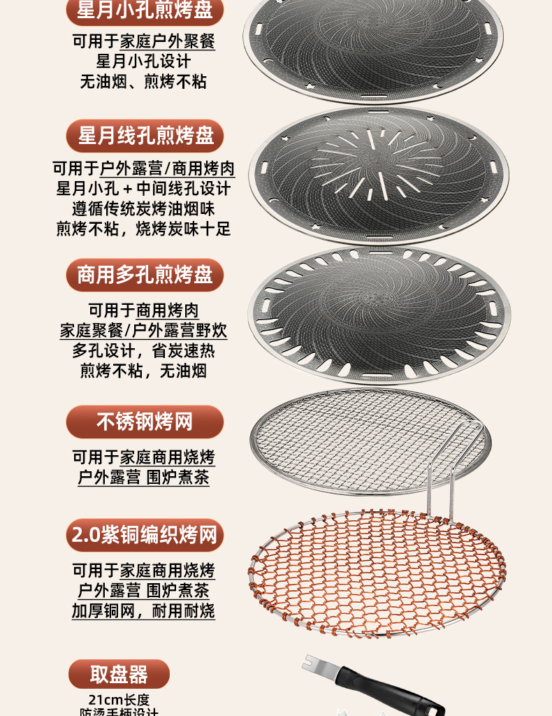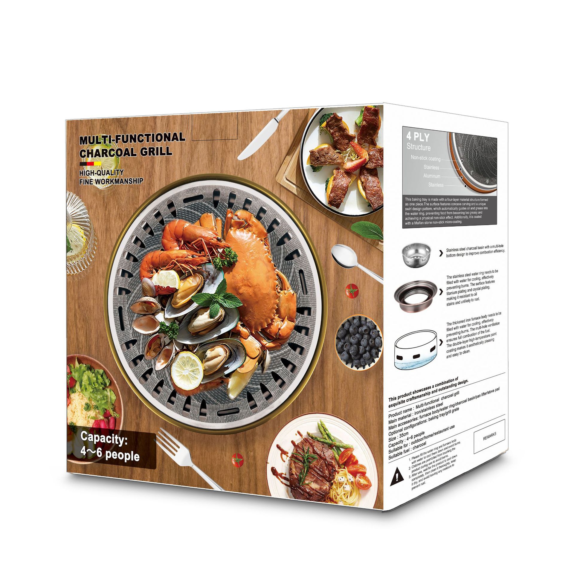 • 숯불 세면대 패키지 1: 330 주조 알루미늄 그릴 팬 + 스테인레스 스틸 그릴 메쉬
