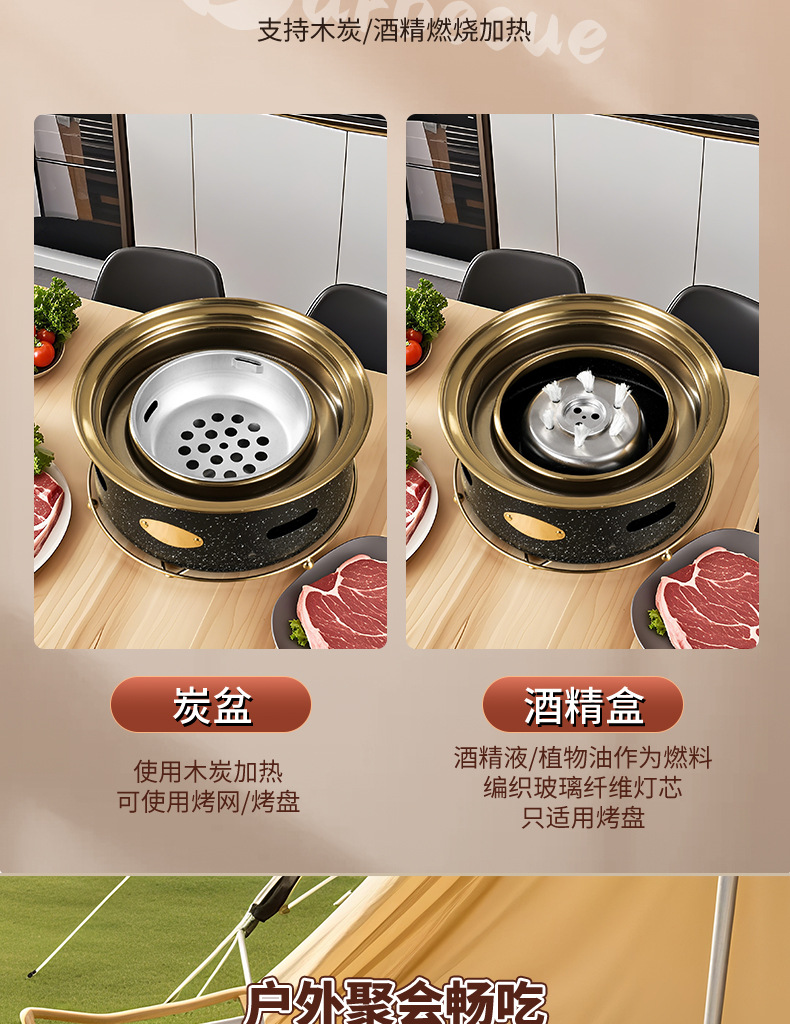 국경을 넘는 새로운 두꺼운 탄소강 바베큐 그릴 Maifan Stone Dongta 스토브 상업용 알코올 식물성 기름 대형 바베큐 스토브