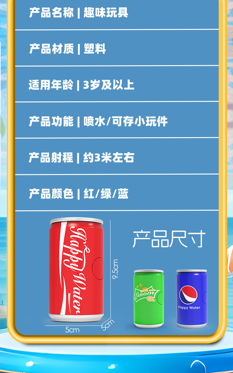 물총 콜라 물총 음료 컵 캔 펩시 소다 스프라이트 야외 물놀이 학생 트릭 어린이 장난감