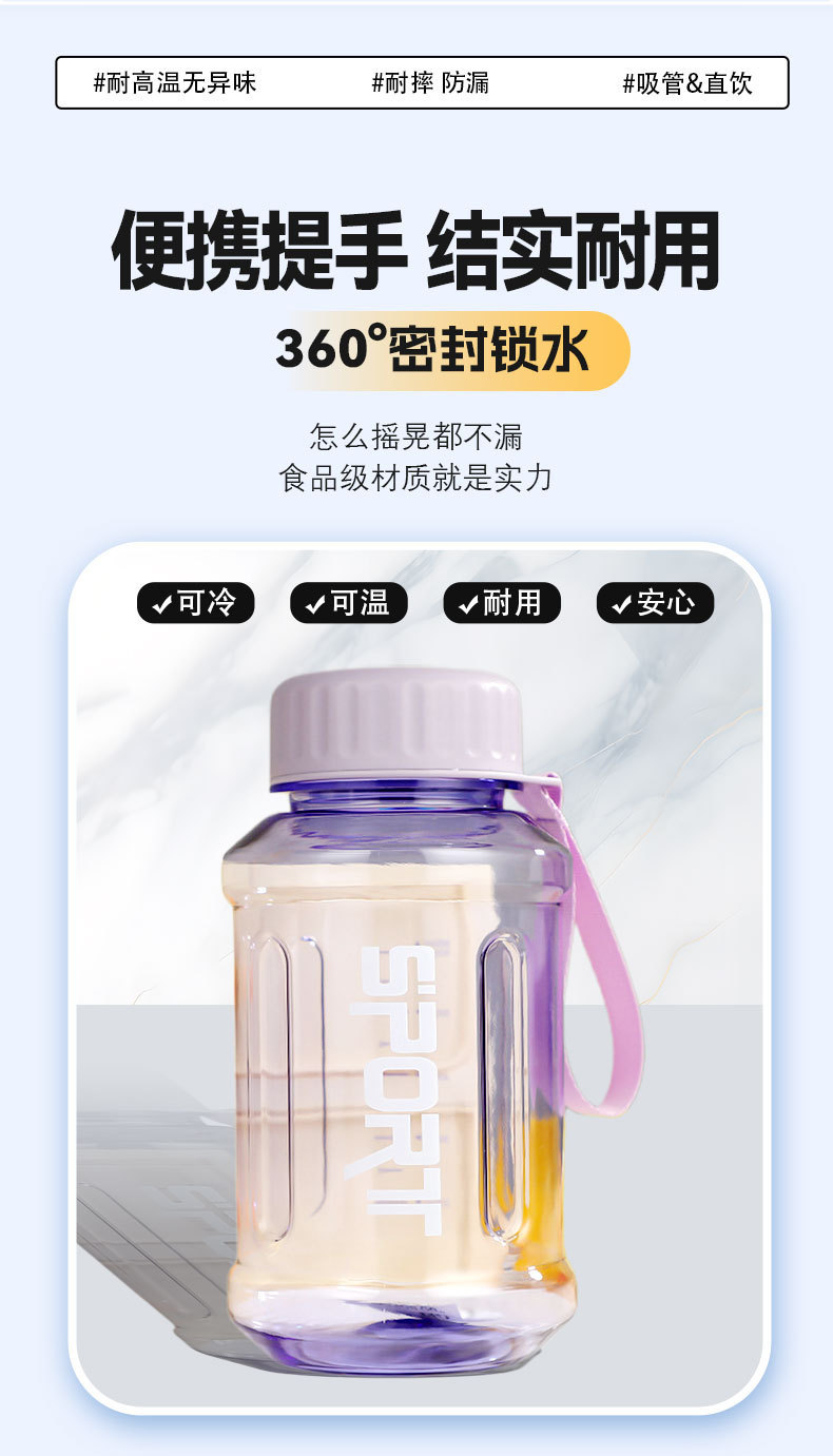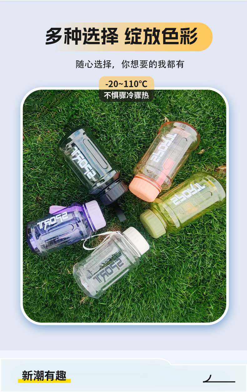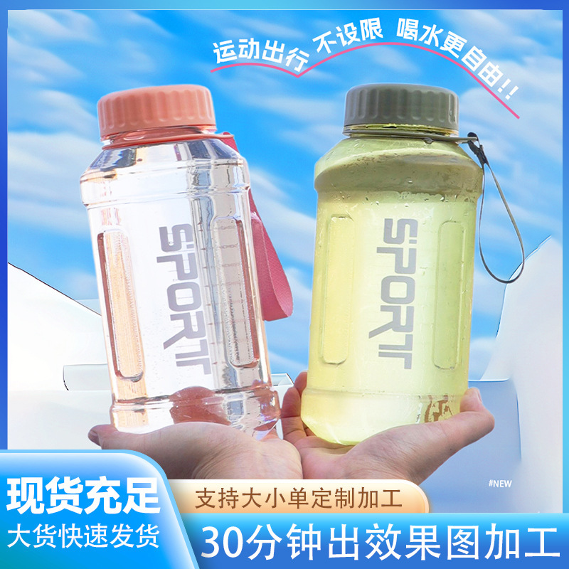 야외 스포츠 대용량 스포츠 워터 컵, 고온 방지 및 낙하 방지, 휴대용 플라스틱 투명 공간 워터 컵, 현장 직접 판매스토어 가기