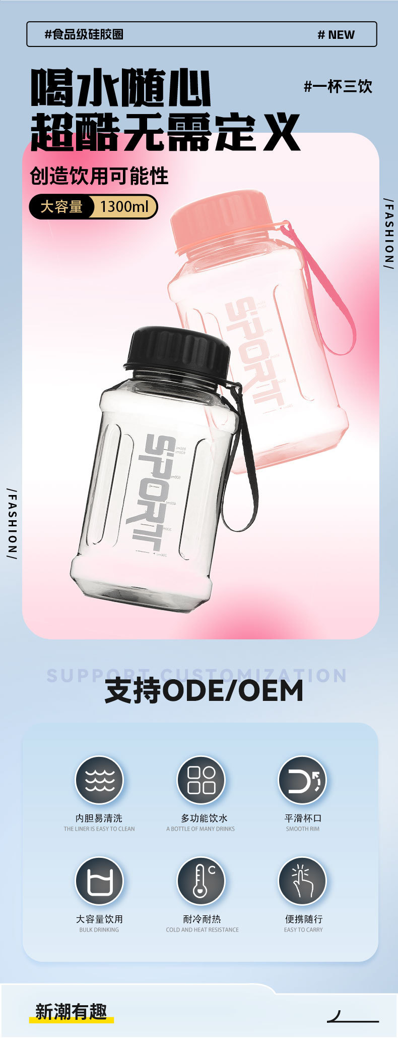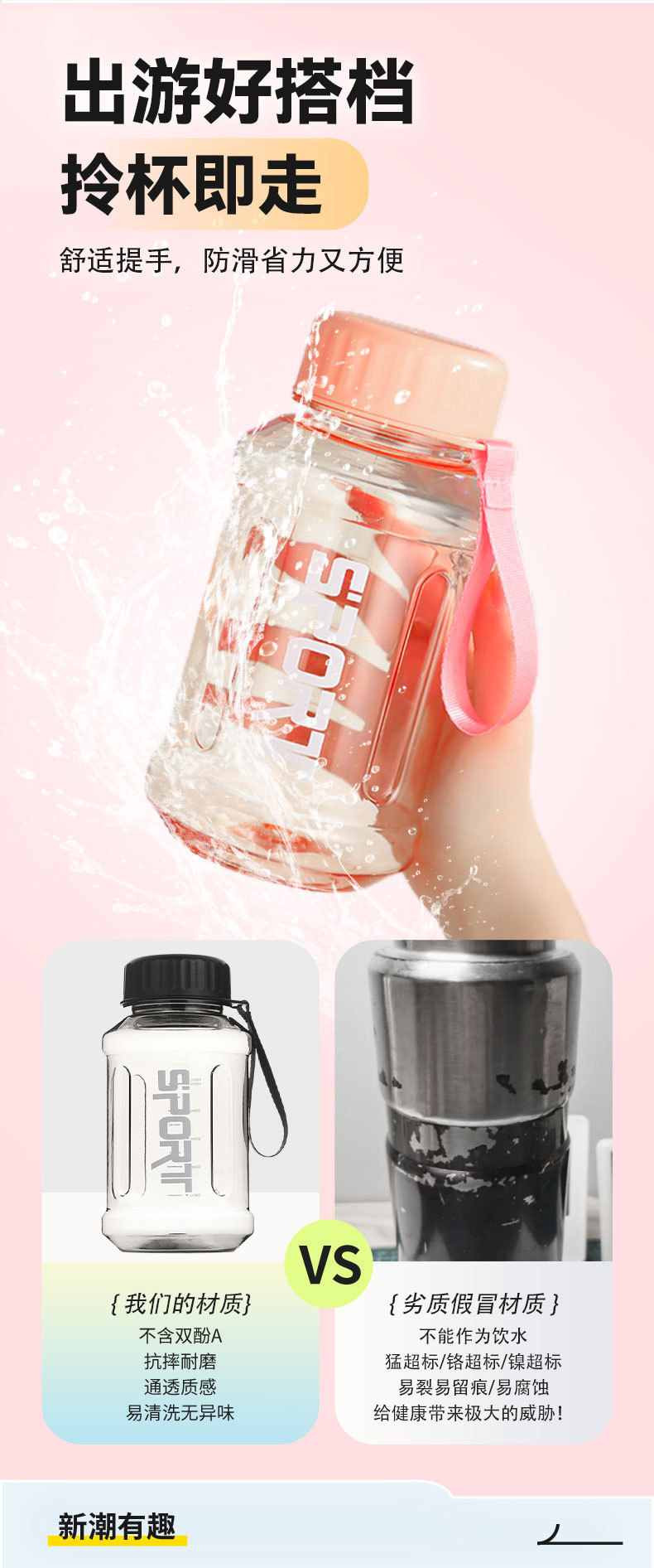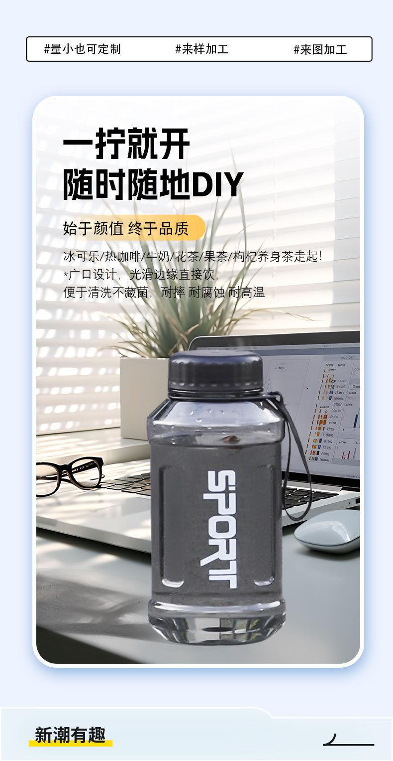 야외 스포츠 대용량 스포츠 워터 컵, 고온 방지 및 낙하 방지, 휴대용 플라스틱 투명 공간 워터 컵, 현장 직접 판매스토어 가기