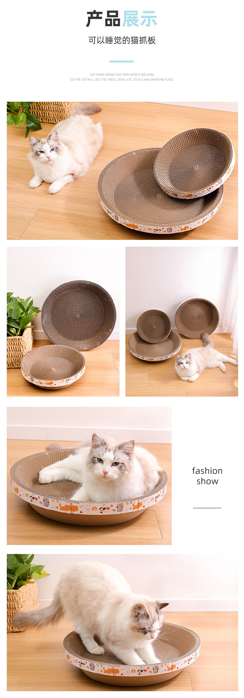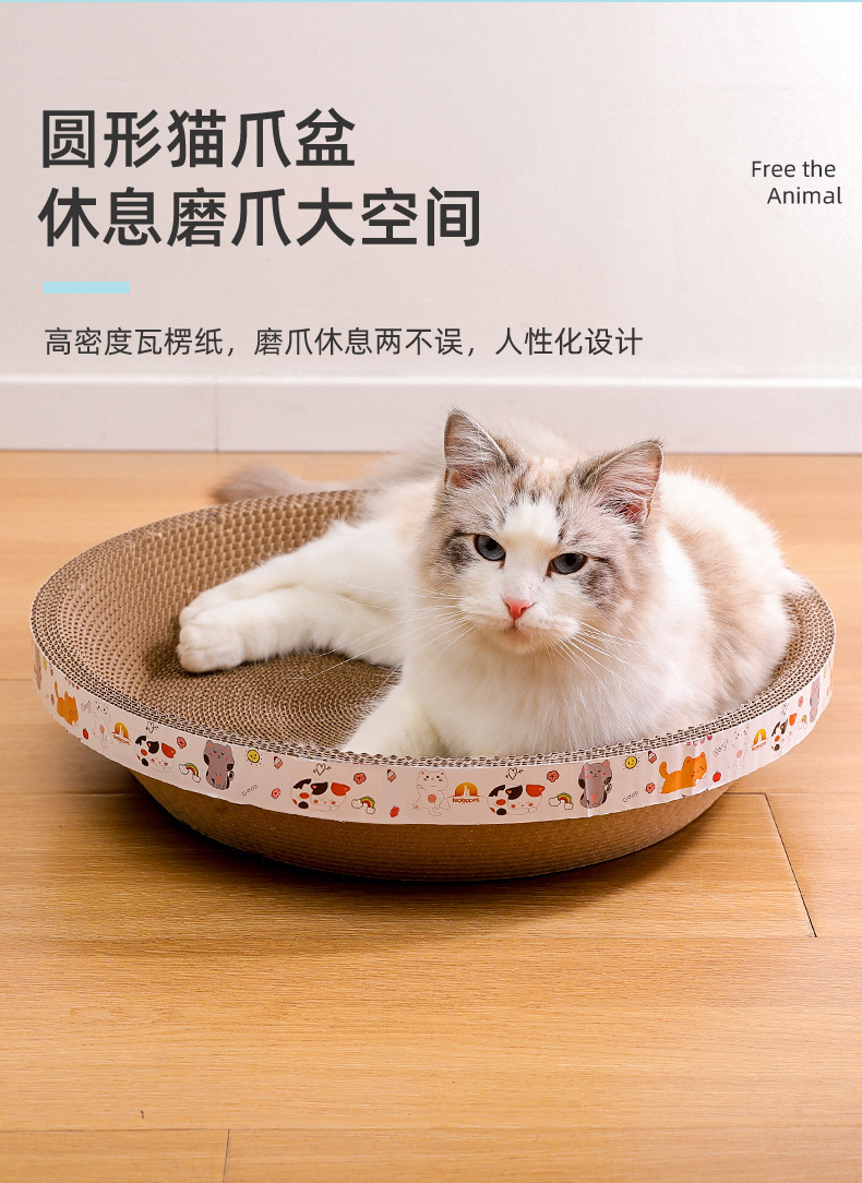 골판지 원형 고양이 스크래치 보드 고양이 집 일체형 내구성 강한 스크래치 방지 무파편 초대형 고양이 스크래치 그릇 고양이 장난감스토어 가기