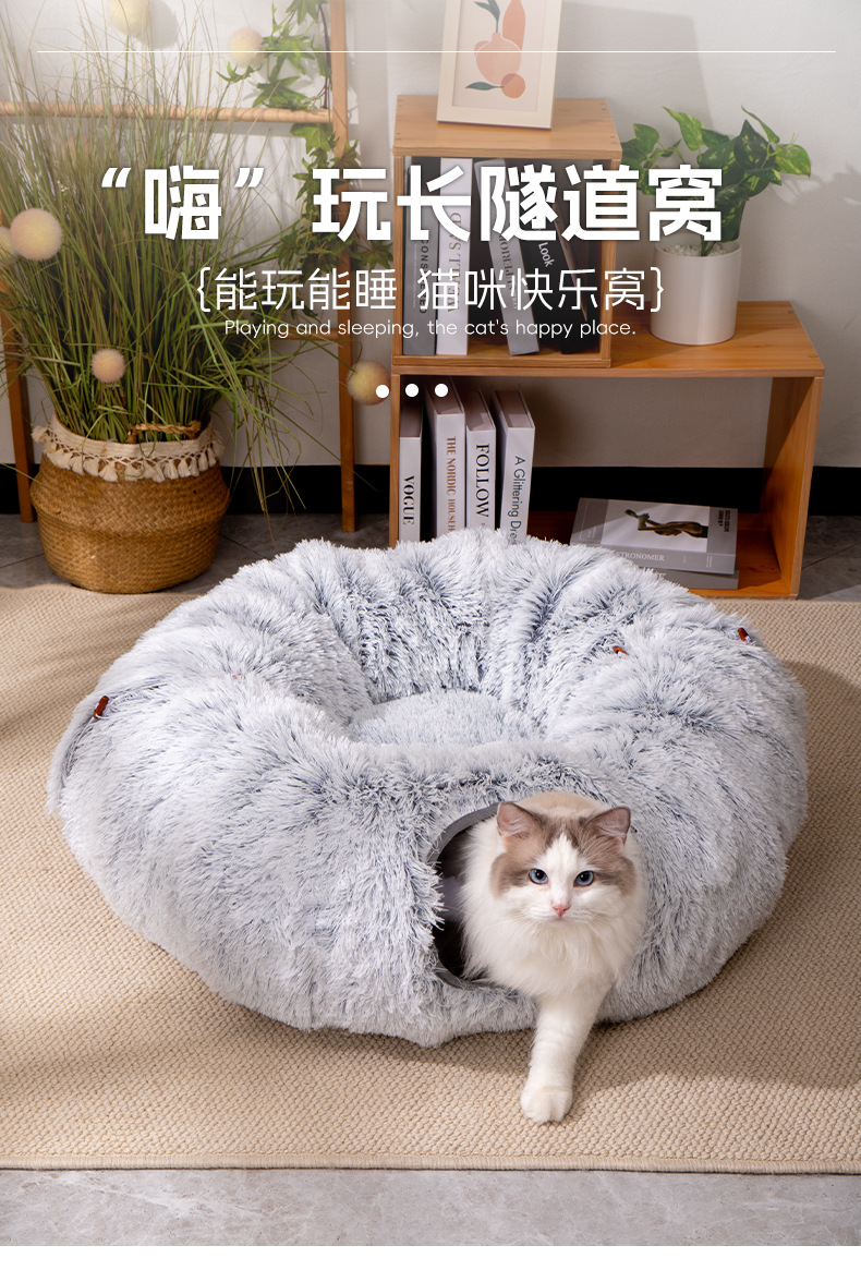 새로운 터널 고양이 둥지 애완 동물 둥지 겨울 고양이 구멍 장난감 접이식 저장 고양이 터널 플러시 고양이 침대