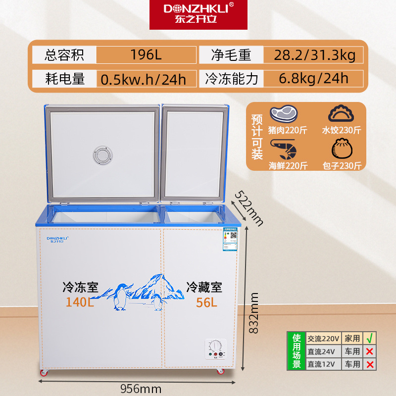 东之开立双温双门冷柜卧式冷藏冷冻冷冻柜大容量冰柜节能车载冰箱스토어 가기