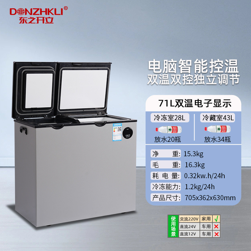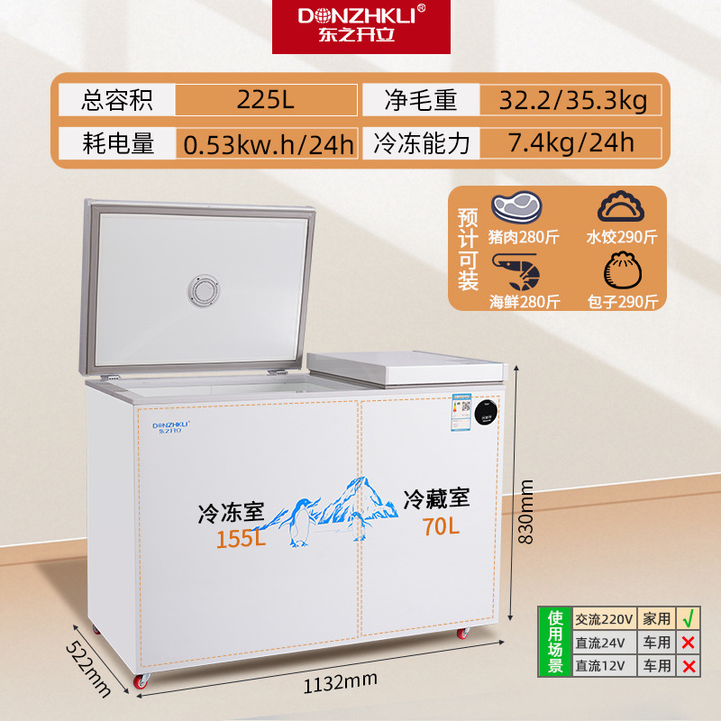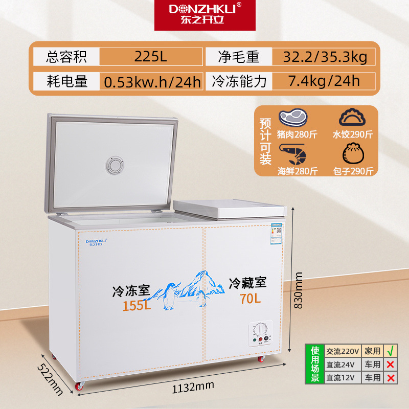 东之开立双温双门冷柜卧式冷藏冷冻冷冻柜大容量冰柜节能车载冰箱