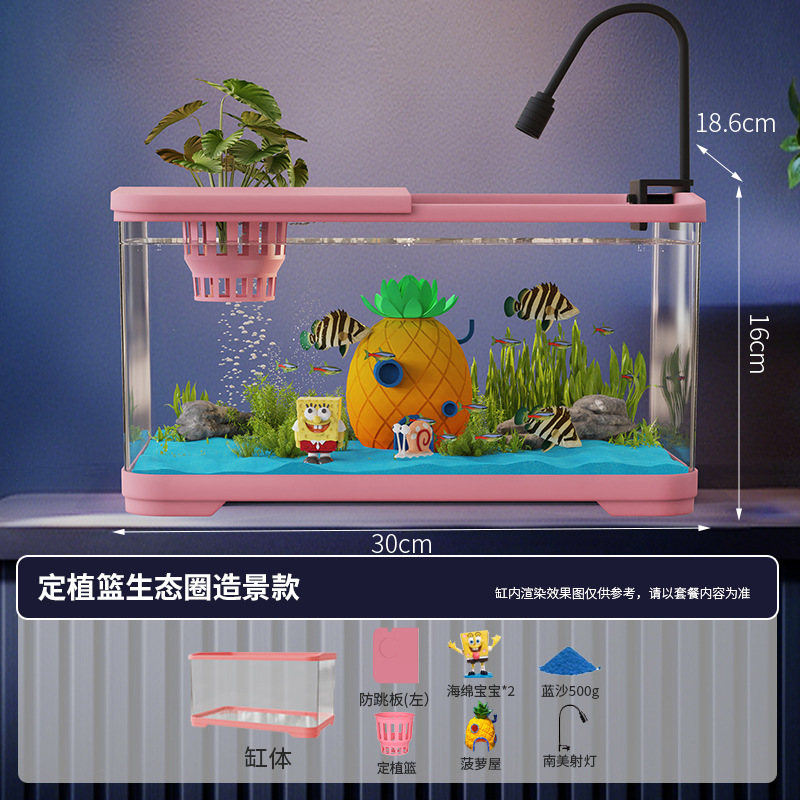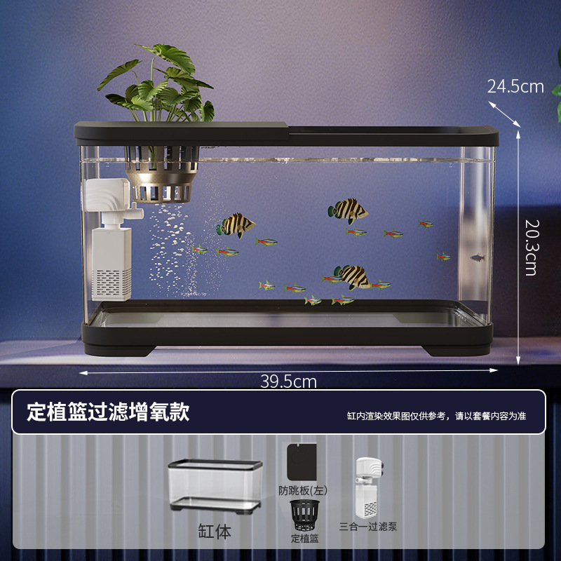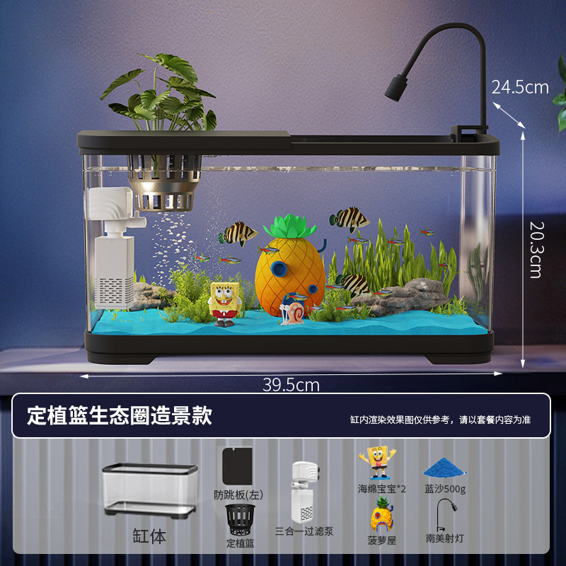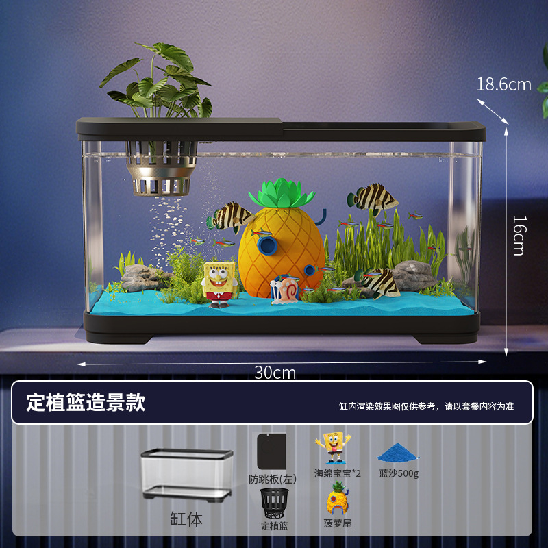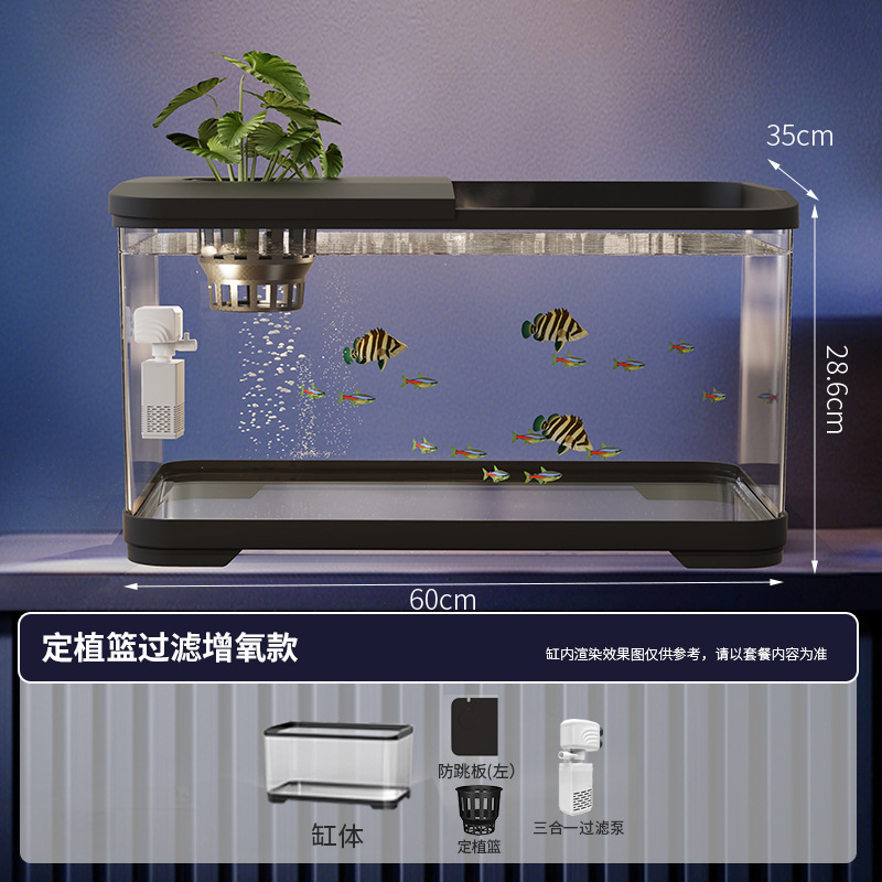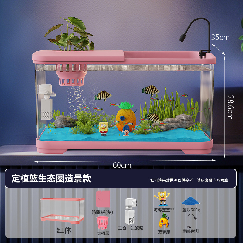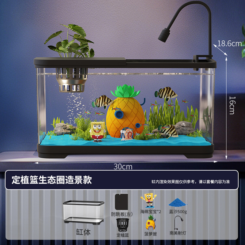 수조 홈 거실 작은 만화 관상용 데스크탑 투명 조경 수족관 금붕어 탱크 산소화 생태 어류