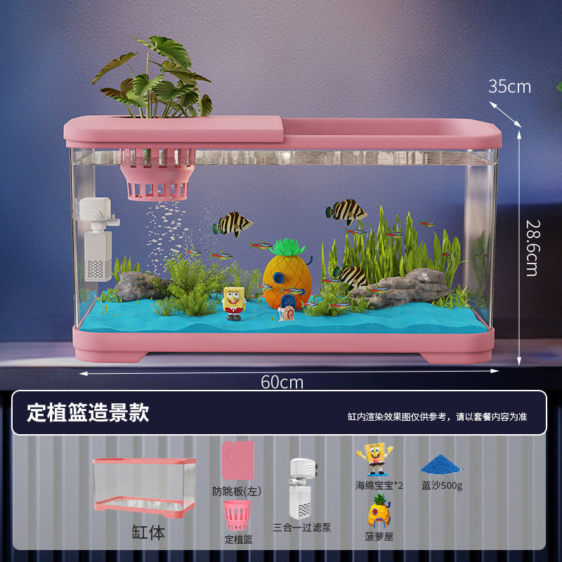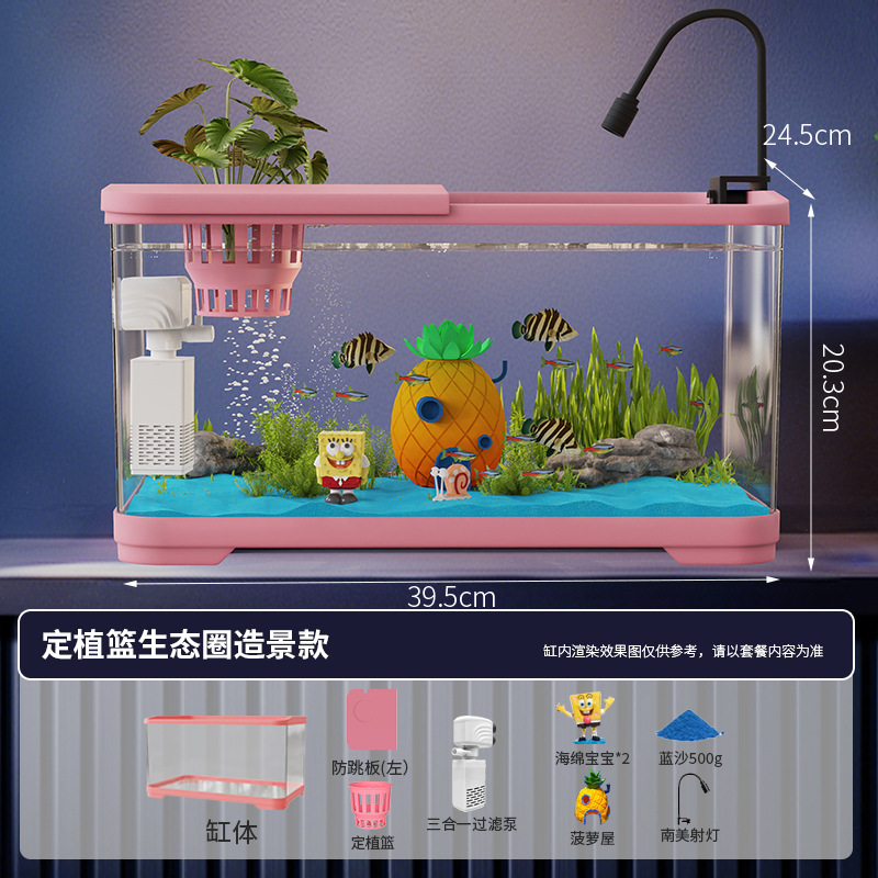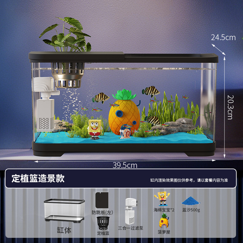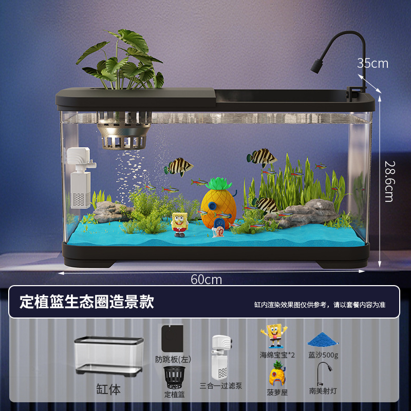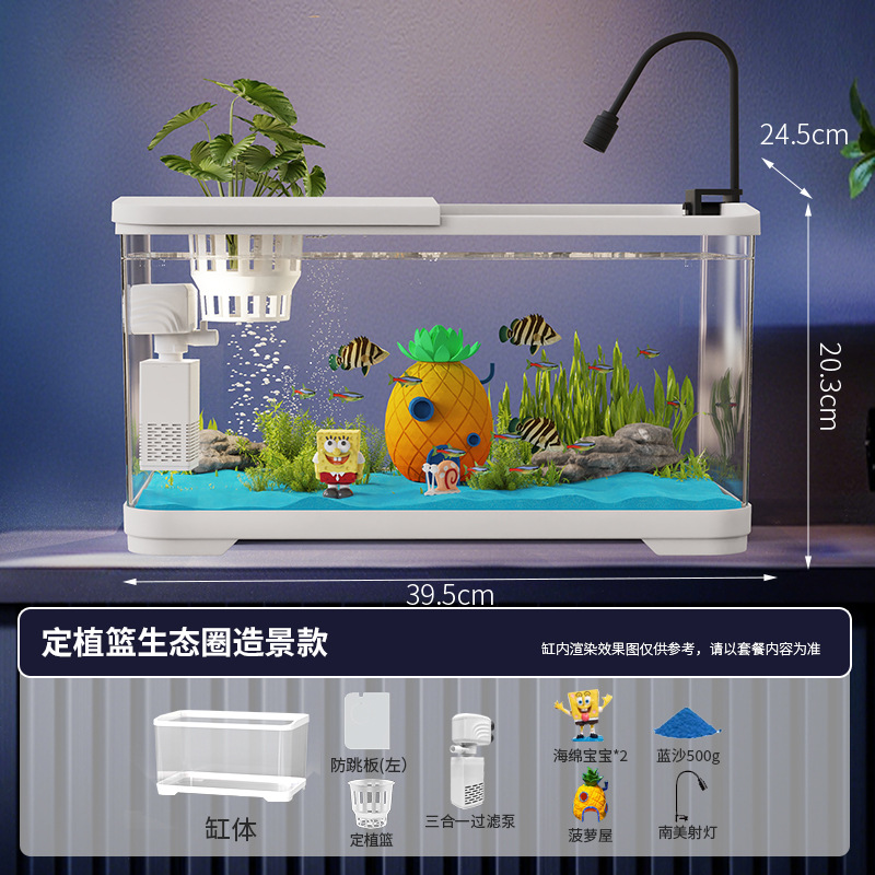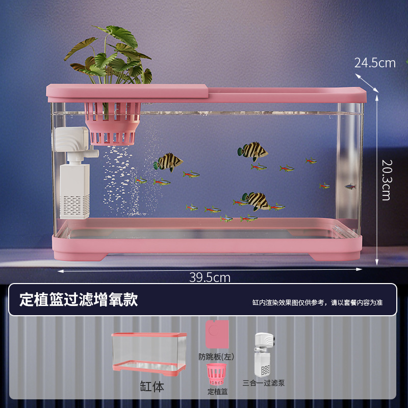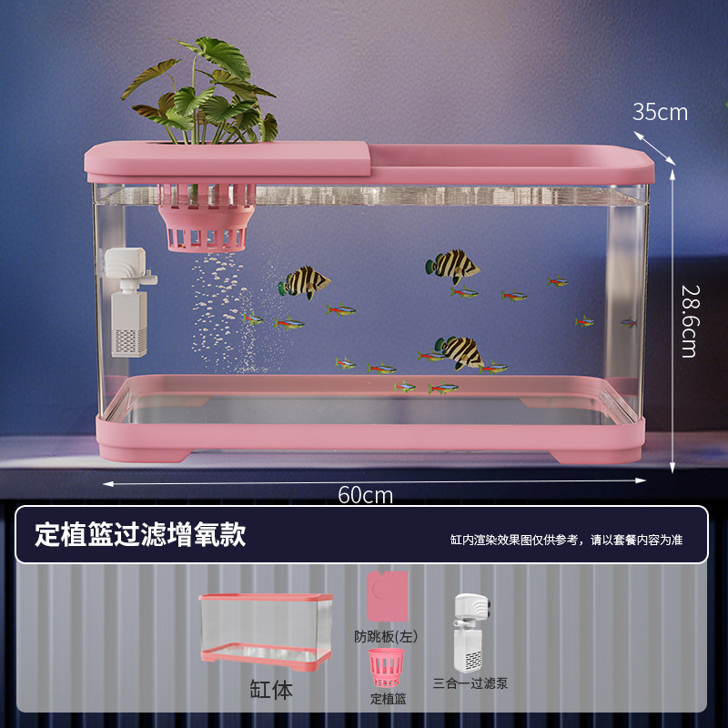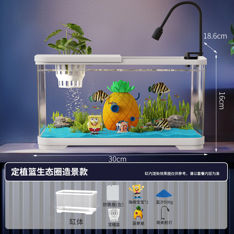 수조 홈 거실 작은 만화 관상용 데스크탑 투명 조경 수족관 금붕어 탱크 산소화 생태 어류