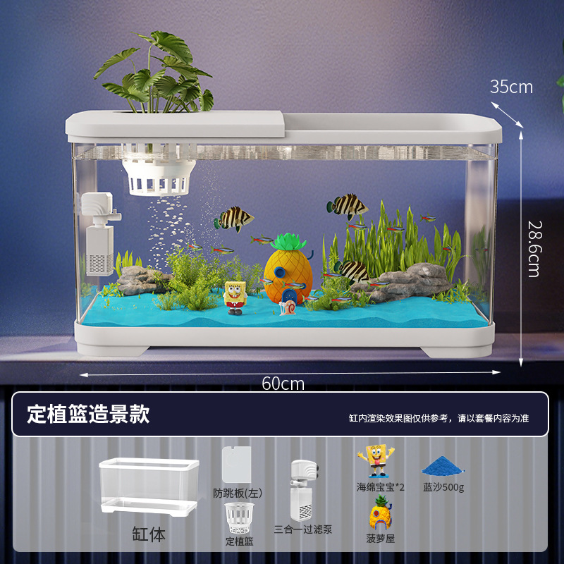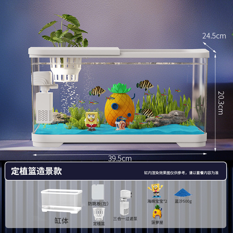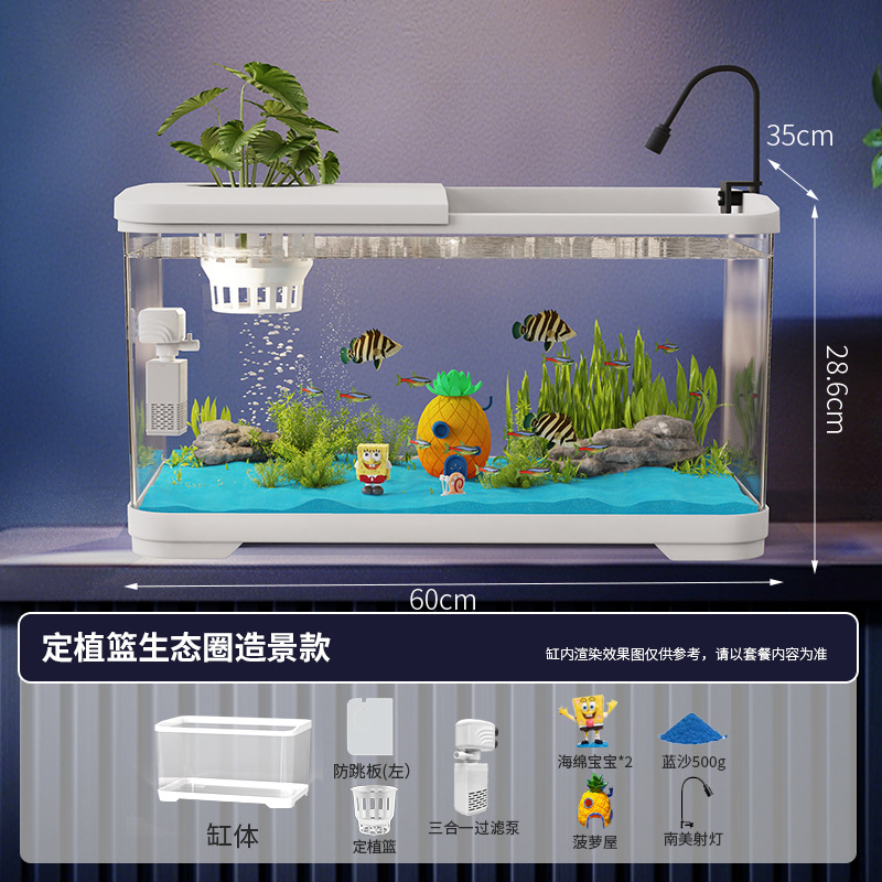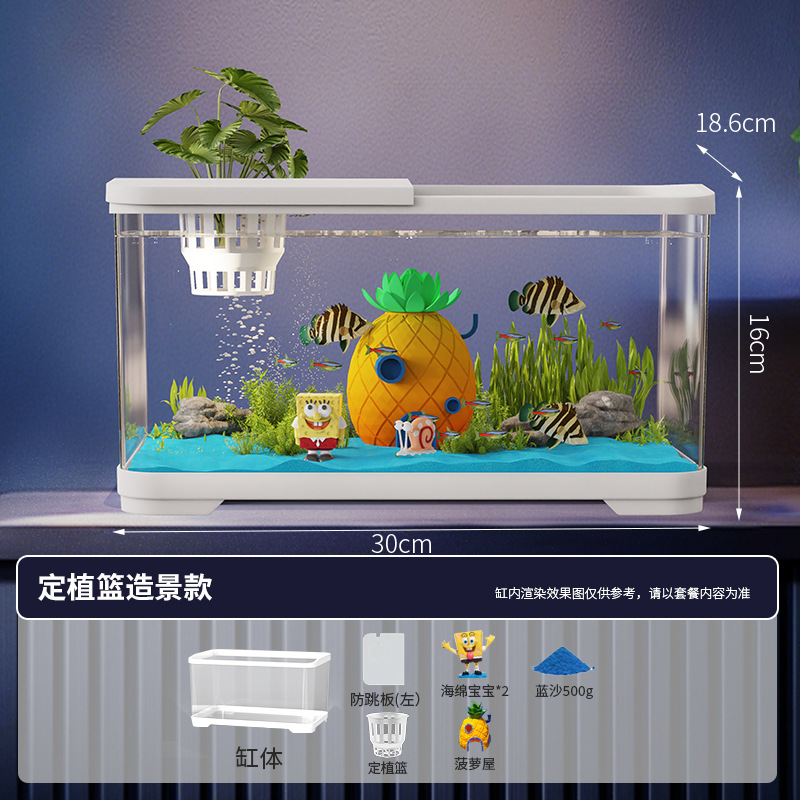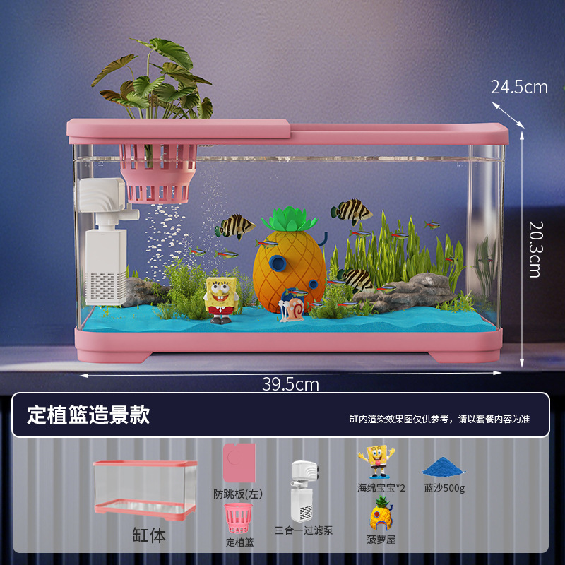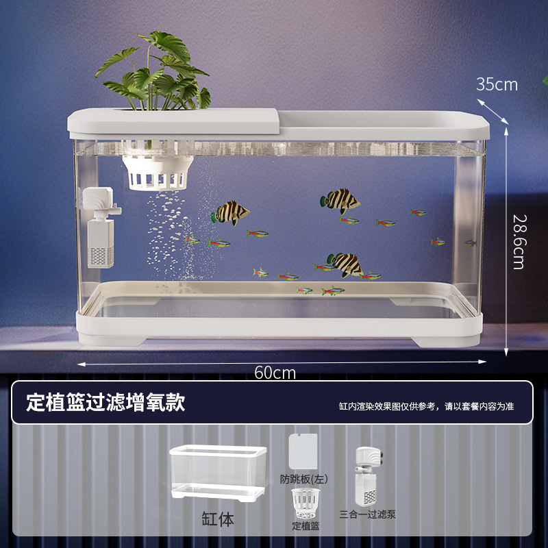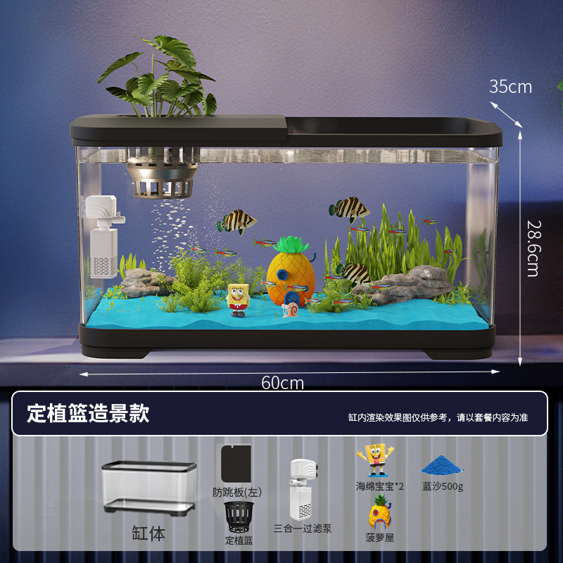 수조 홈 거실 작은 만화 관상용 데스크탑 투명 조경 수족관 금붕어 탱크 산소화 생태 어류