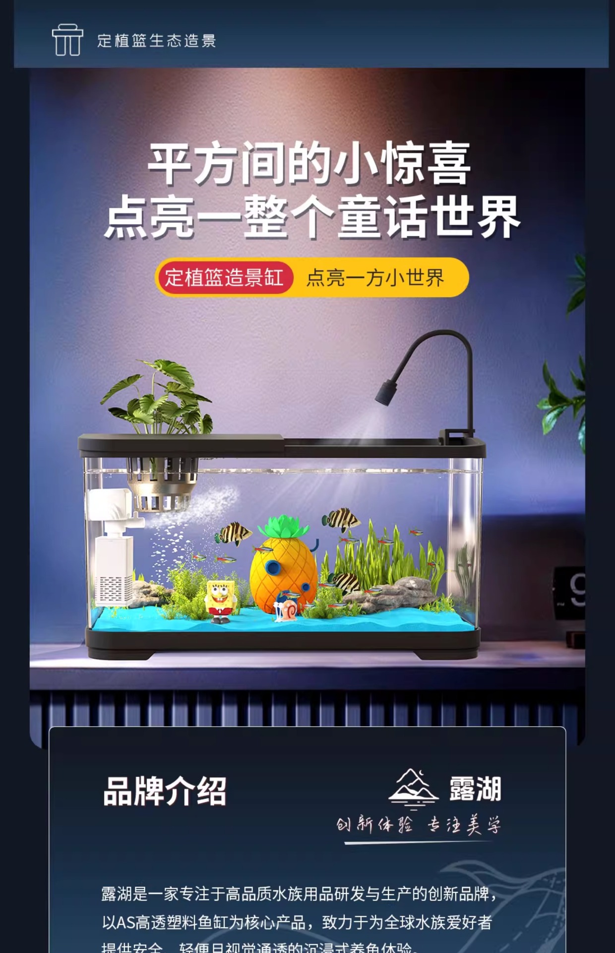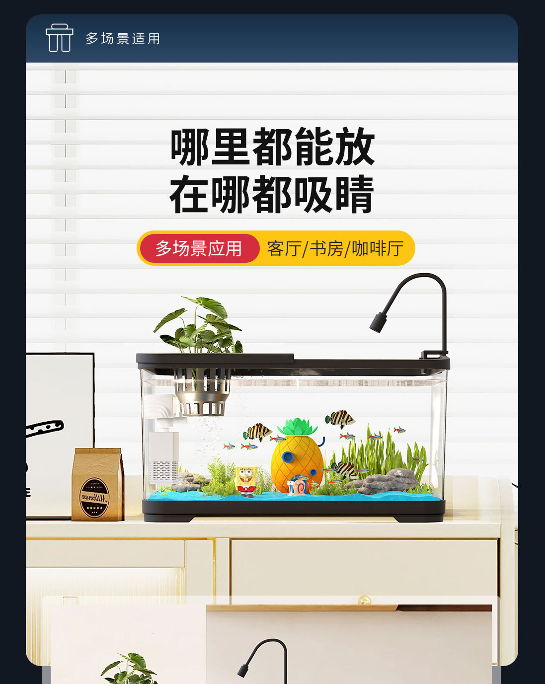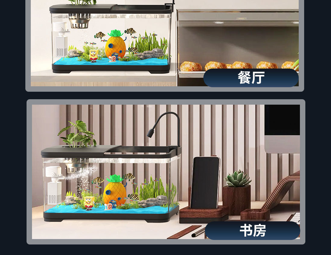 수조 홈 거실 작은 만화 관상용 데스크탑 투명 조경 수족관 금붕어 탱크 산소화 생태 어류스토어 가기