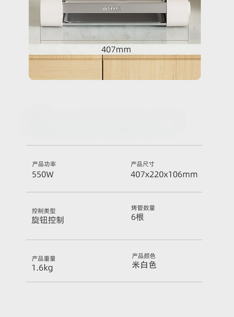 • 흰색 튜브 6개 [소시지 랙 + 오일 트레이 + 바비큐 그릴 + 베이킹 트레이 포함]