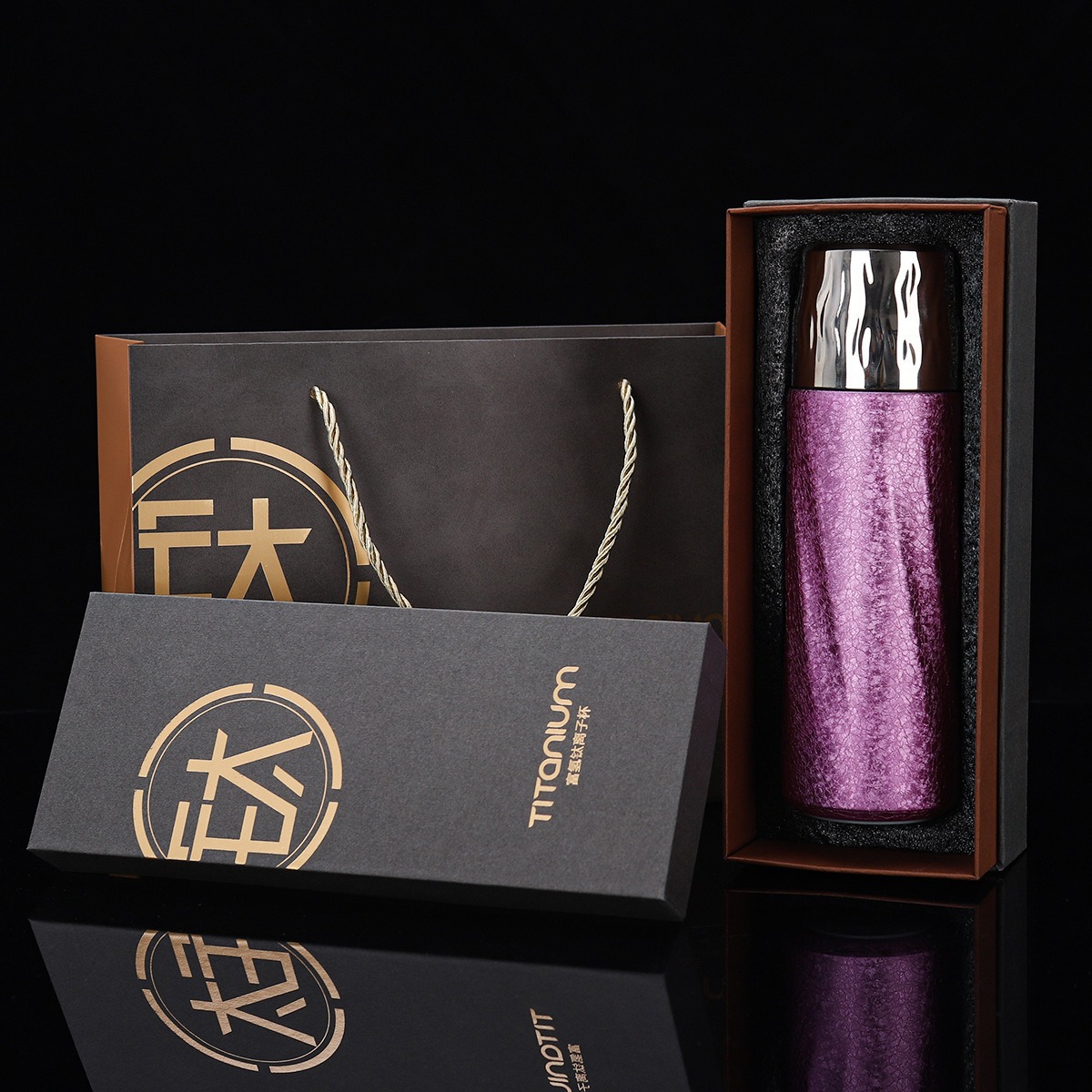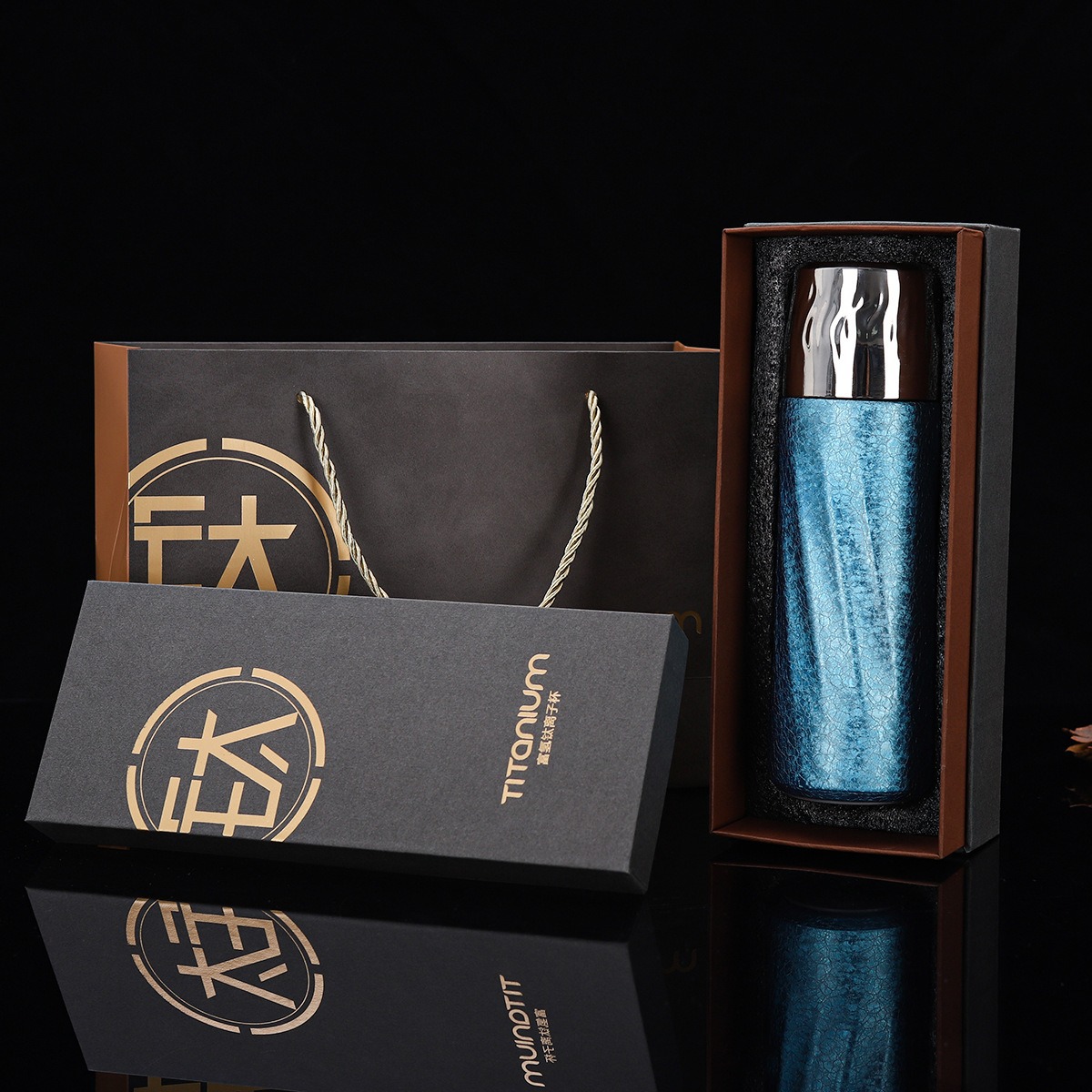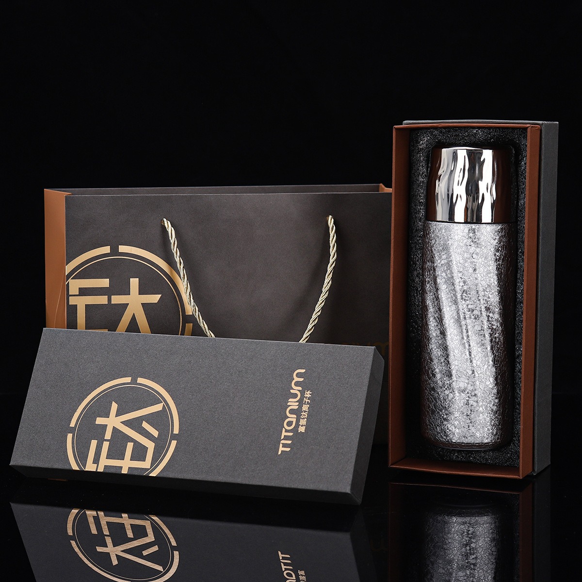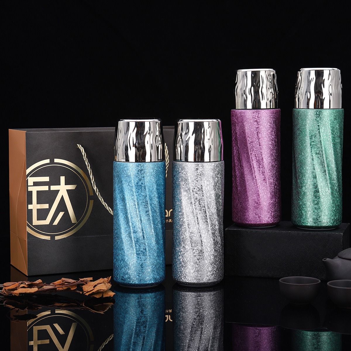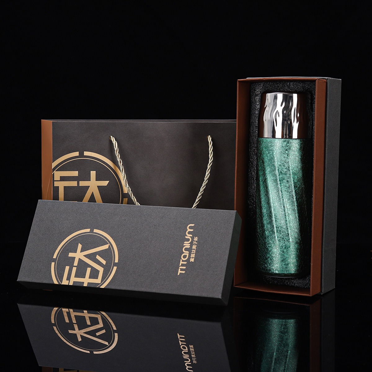 고급스러운 티타늄 코팅 이중벽 진공 단열 컵 선물 상자 세트 고급 비즈니스 선물 세트 티 컵 티타늄 컵스토어 가기
