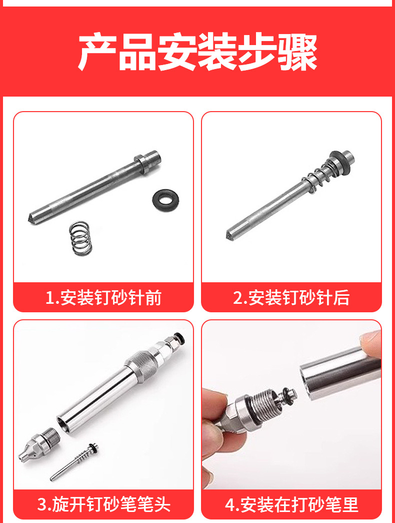 • 공압 못 모래 바늘 - 8면 + 공압 조각 펜 - 일반 스타일