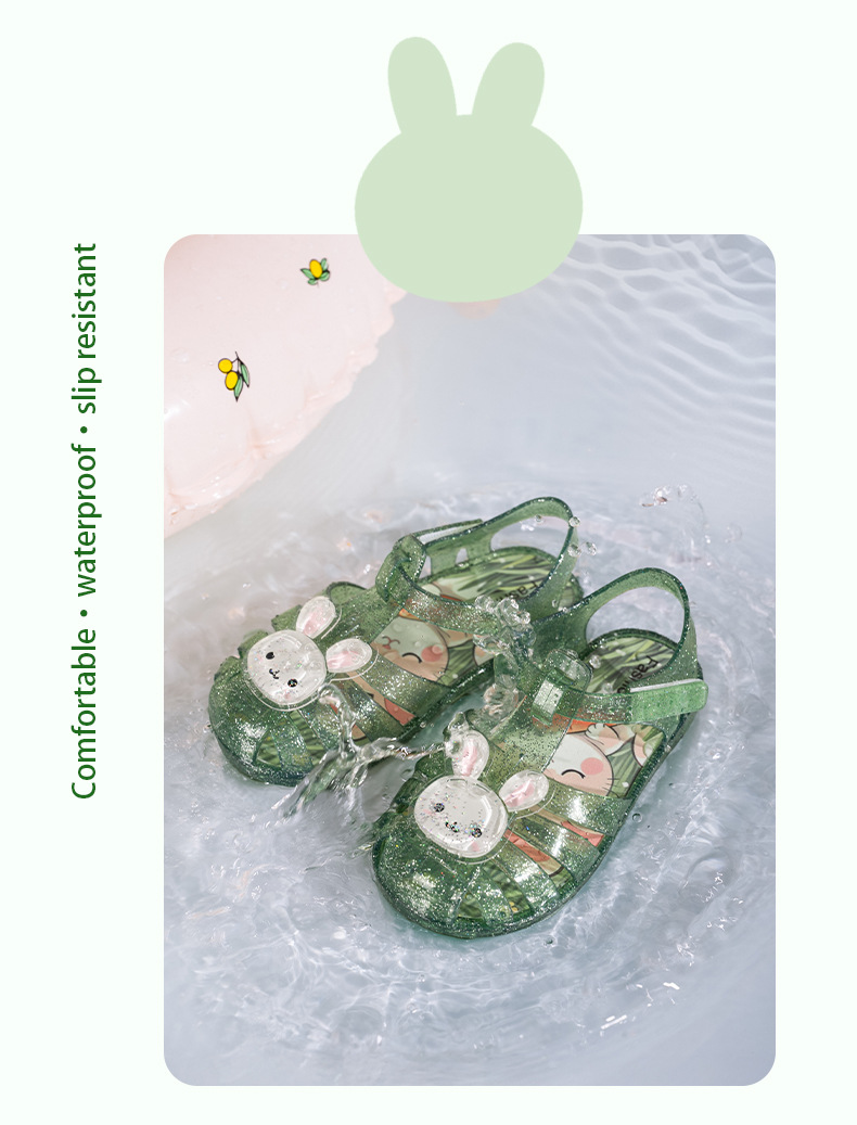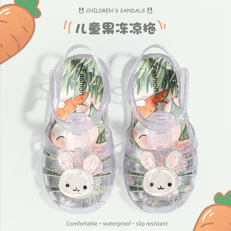 크리스탈 로마 아동화 2025 여름 벨크로 스트랩 유아 및 어린이 남녀 공용 토끼 크리스탈 신발 공주 신발 만화스토어 가기