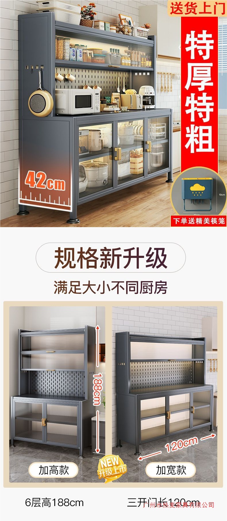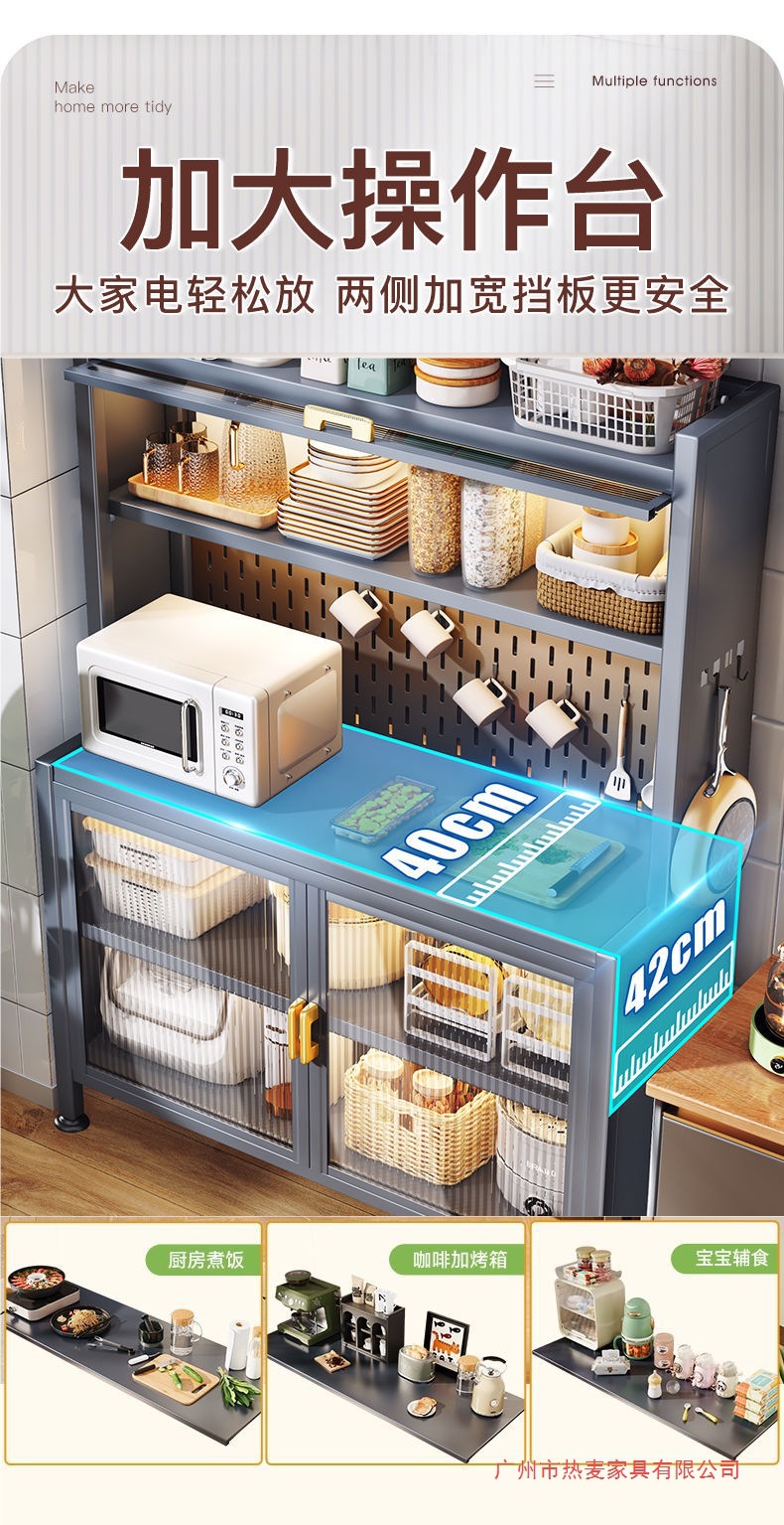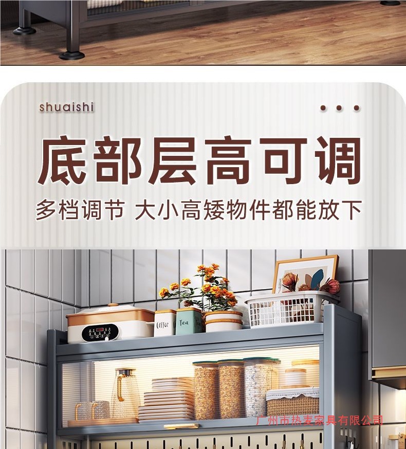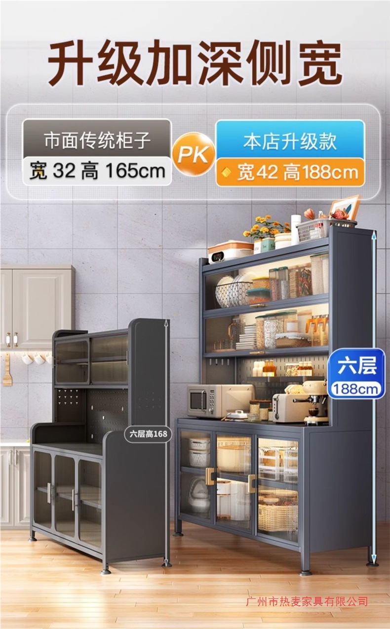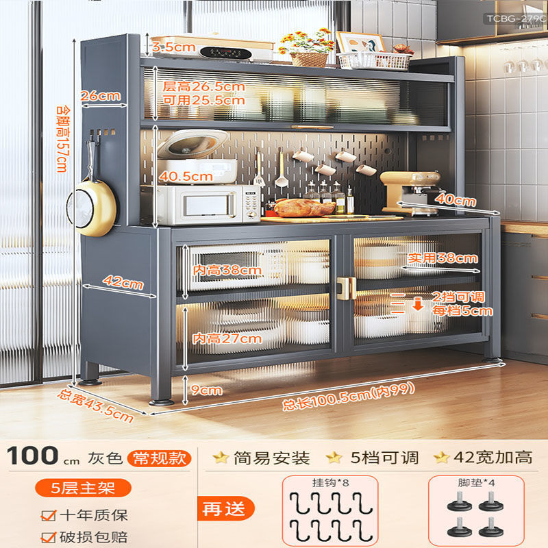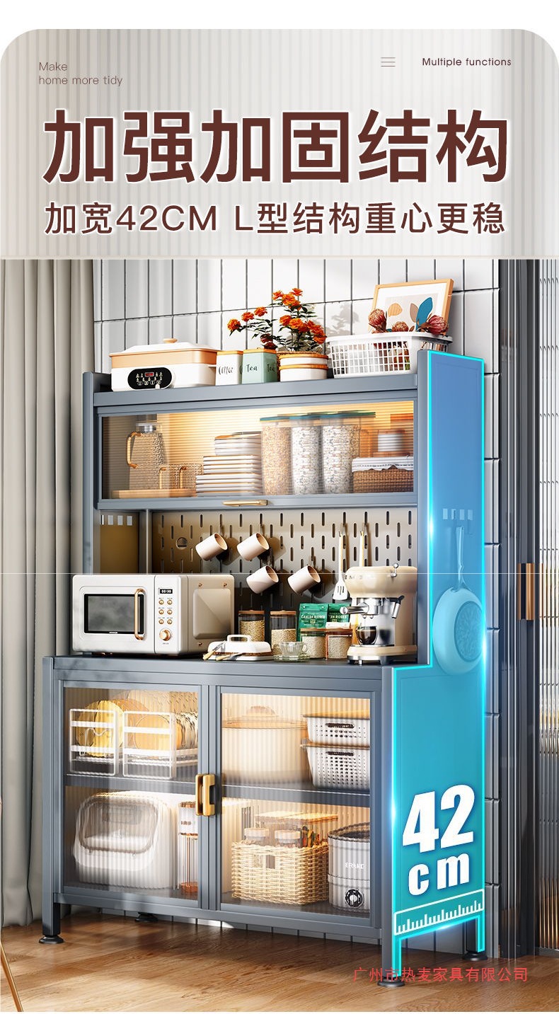 주방 밀폐형 수납 선반, 확장형 바닥부터 천장까지 이어지는 다층 철제 찬장, 다기능 수납 식기 및 냄비 수납 캐비닛