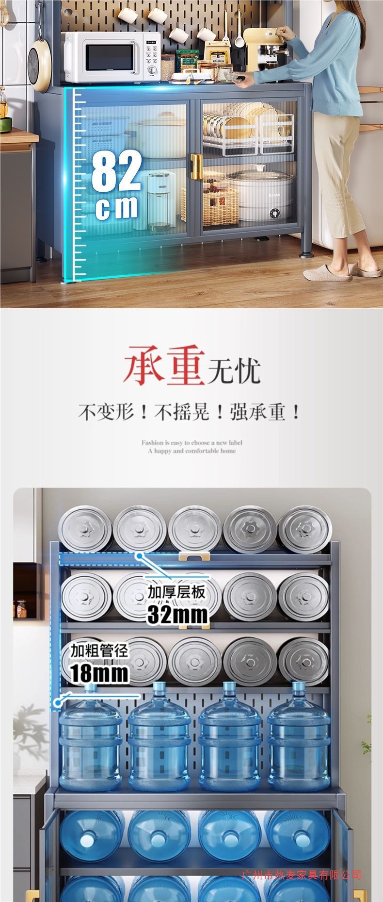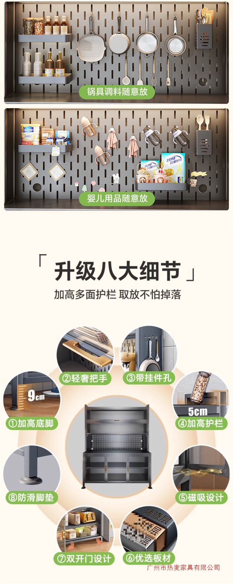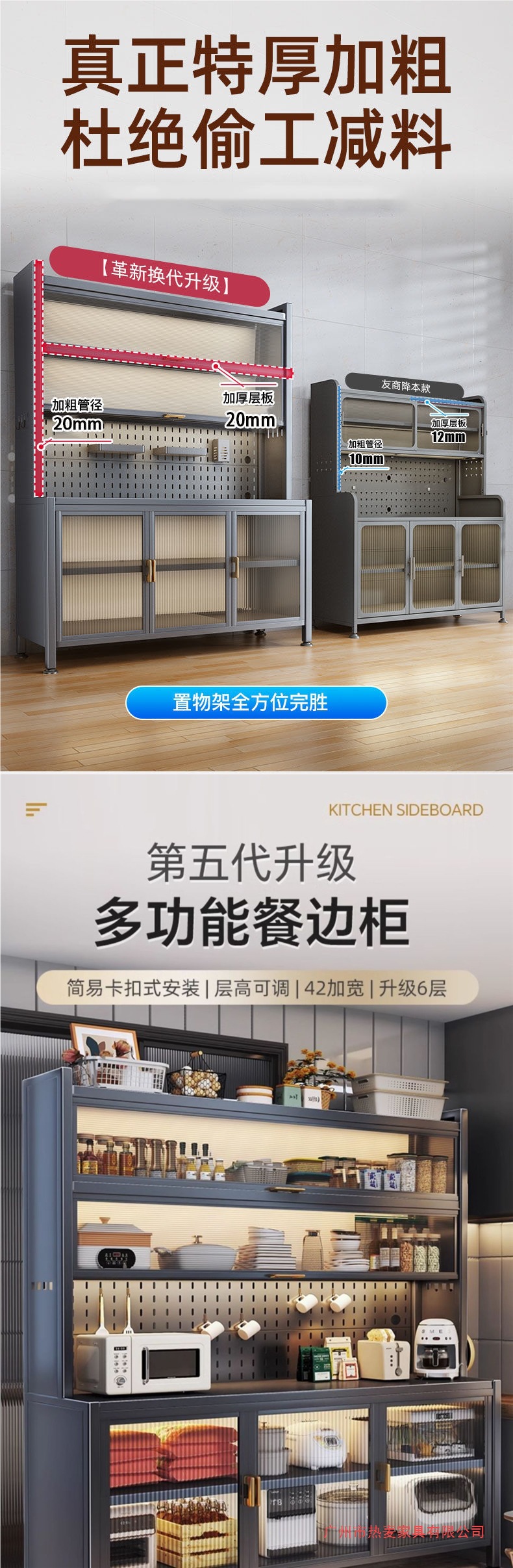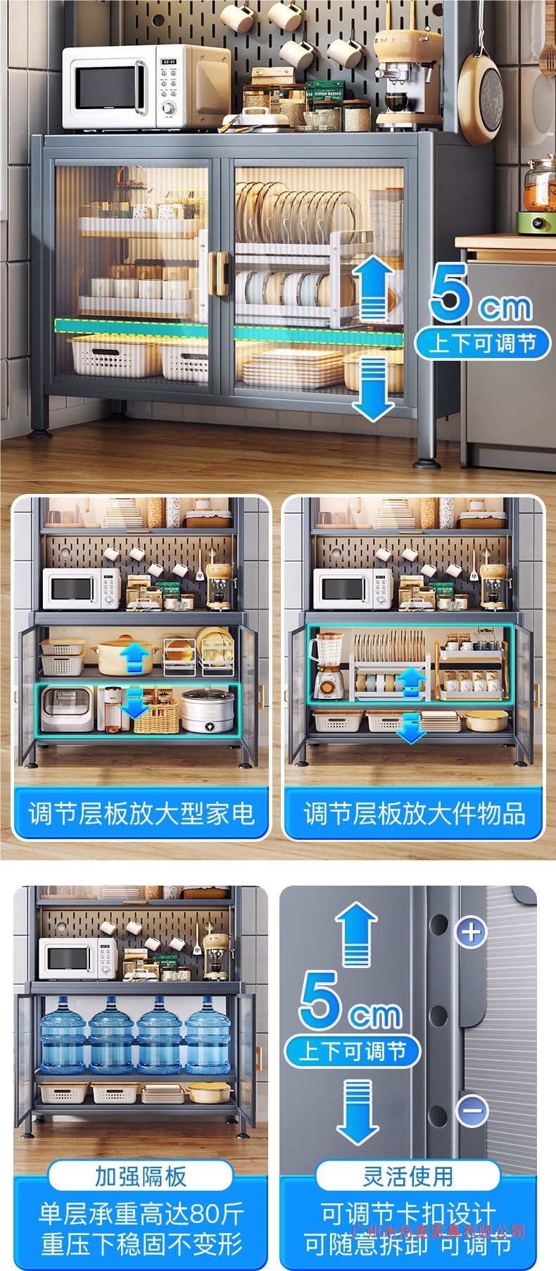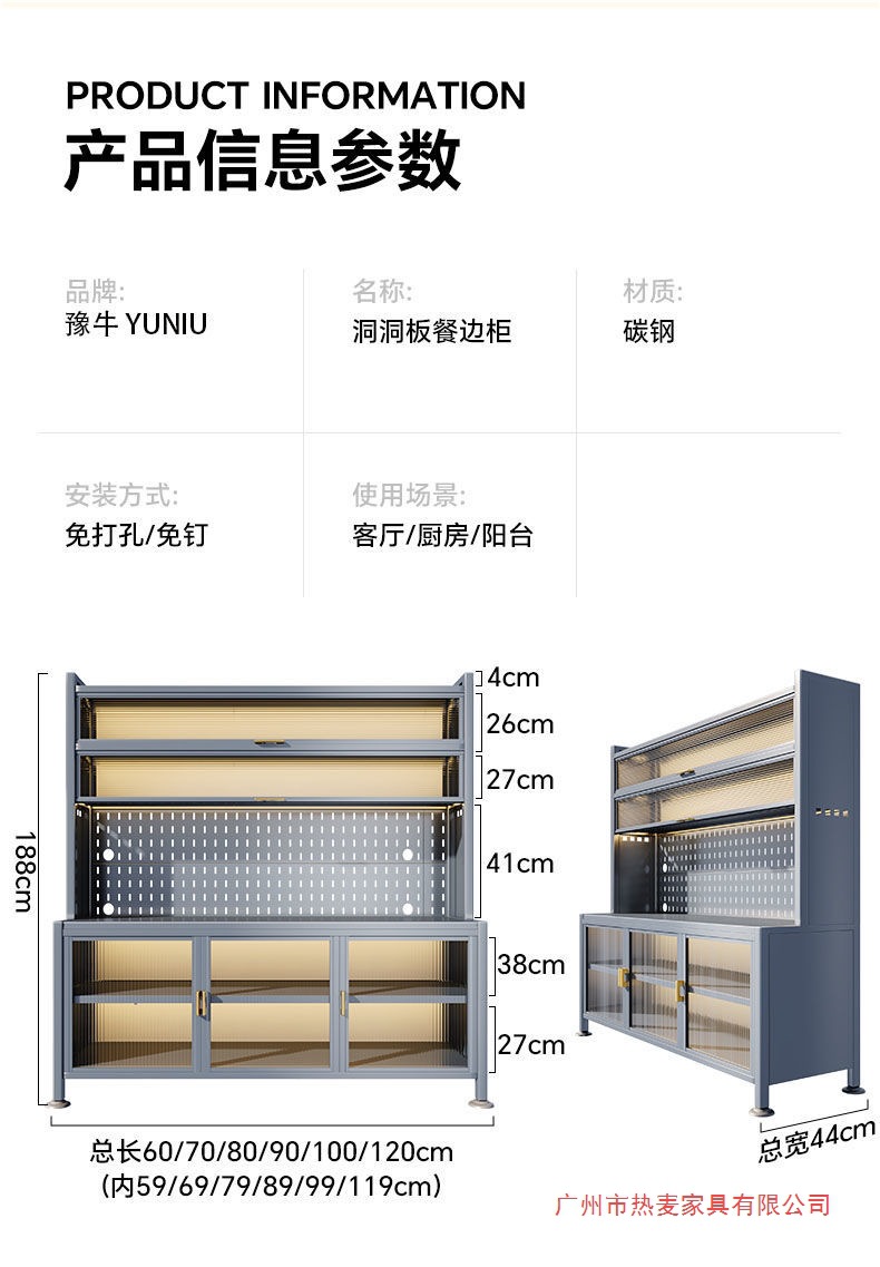주방 밀폐형 수납 선반, 확장형 바닥부터 천장까지 이어지는 다층 철제 찬장, 다기능 수납 식기 및 냄비 수납 캐비닛